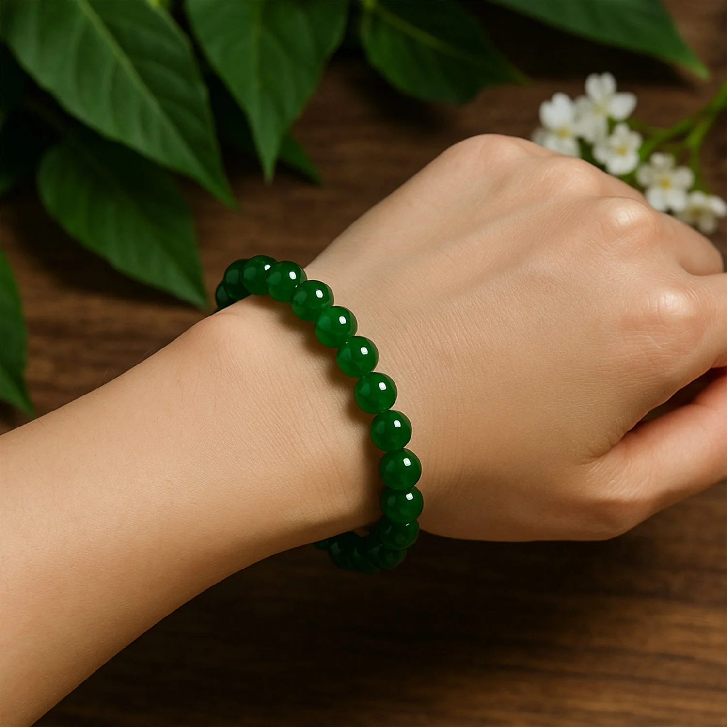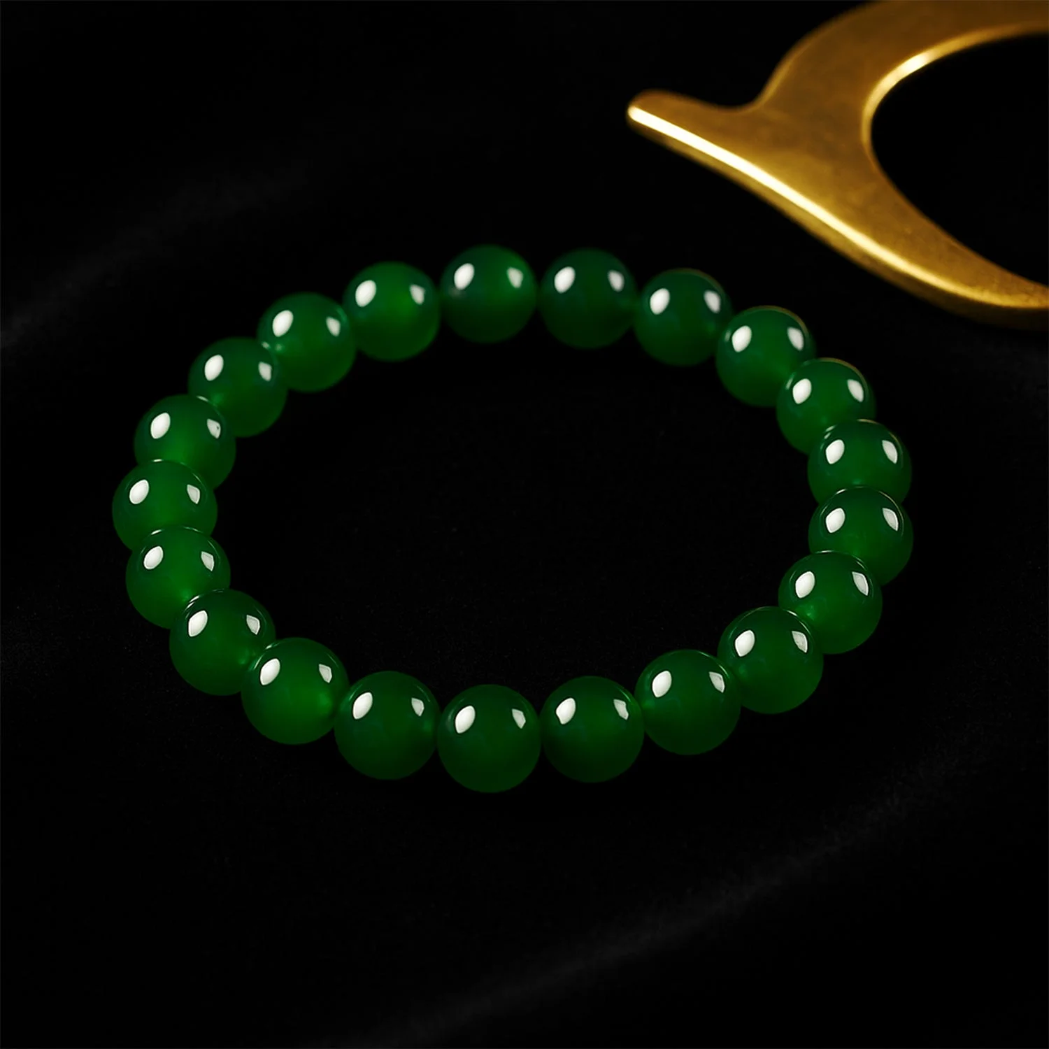 Elegant Polished Green Bead Bracelet – Unisex Stretch Fit Fashion Jewelry with Air-Tight Display Box