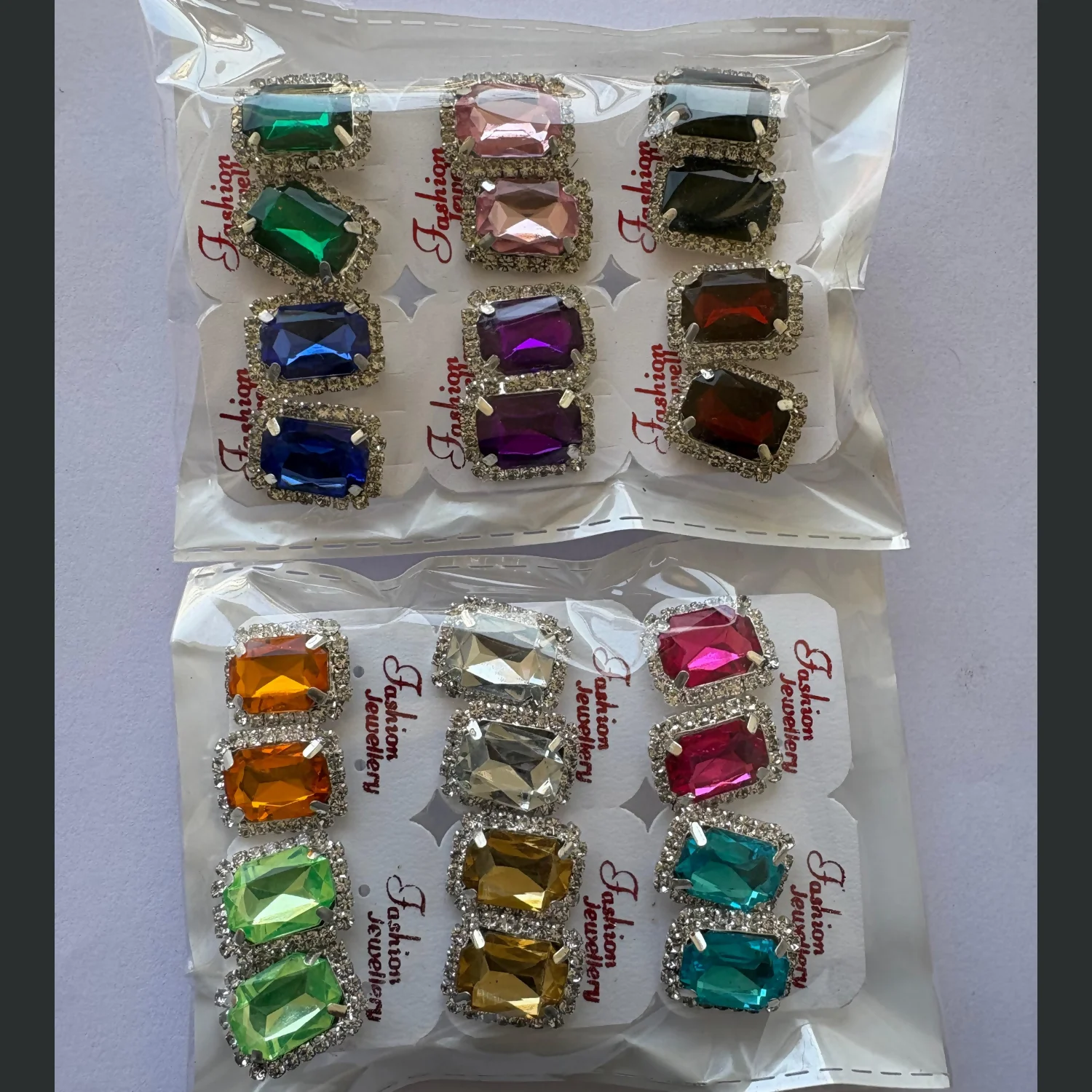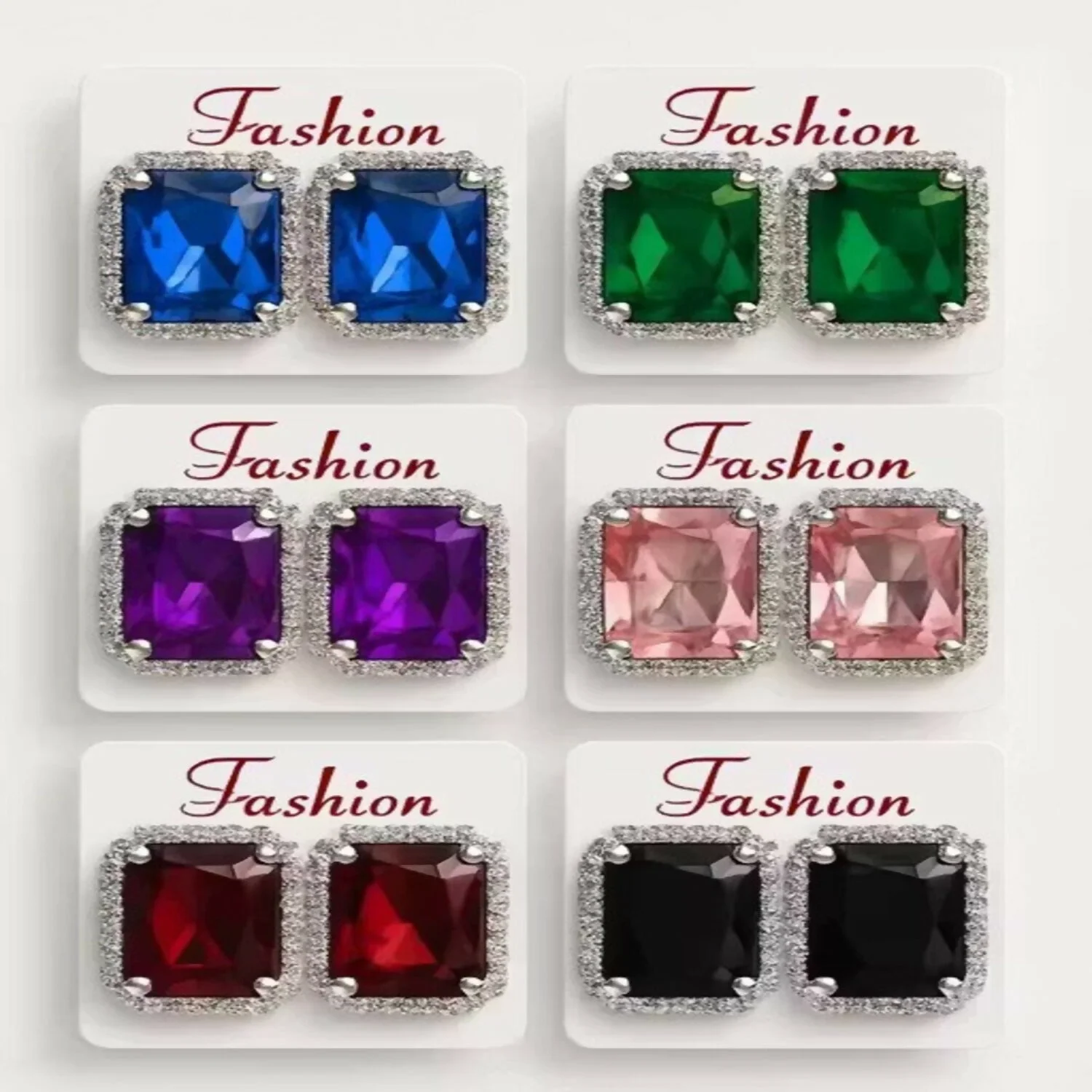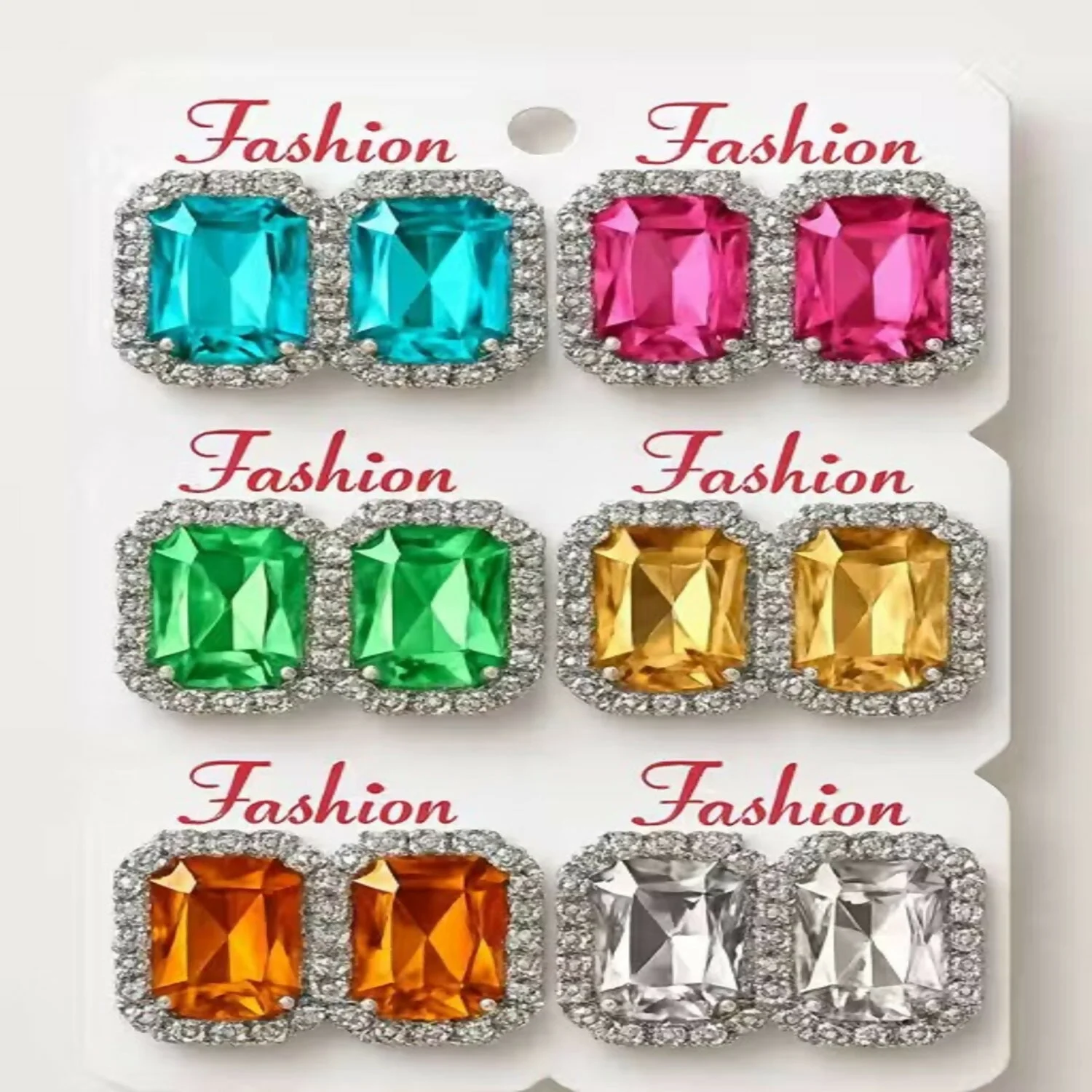 Be the first to review Emerald Cut Crystal Stud Earring Set, Multi-Color Royal Gemstone Collection - Set of 12Pair!