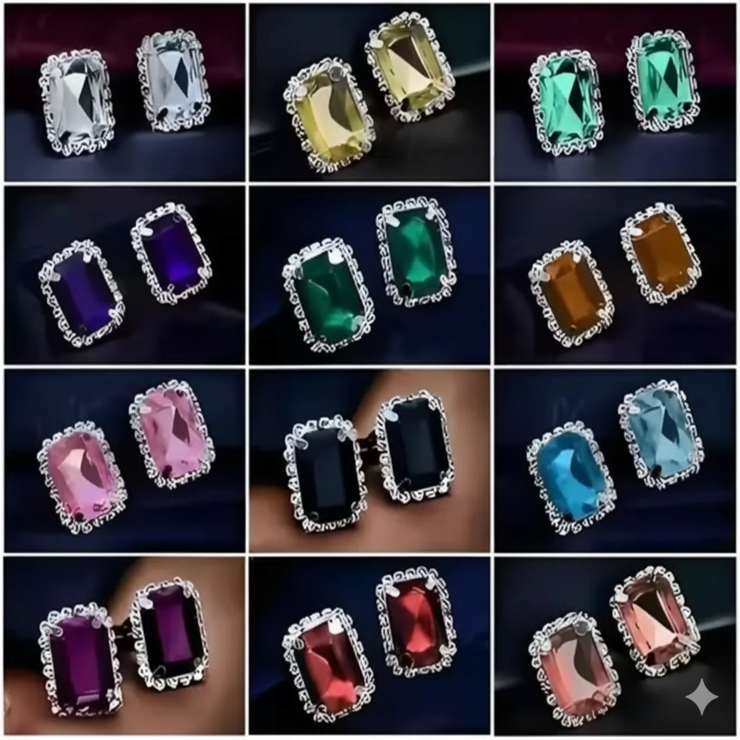 Elevate your accessory game with this stunning set of 12 pairs of ornate crystal stud earrings. Designed for the woman who loves variety and vintage flair, this collection offers a rainbow of colors to match every mood, outfit, and occasion.