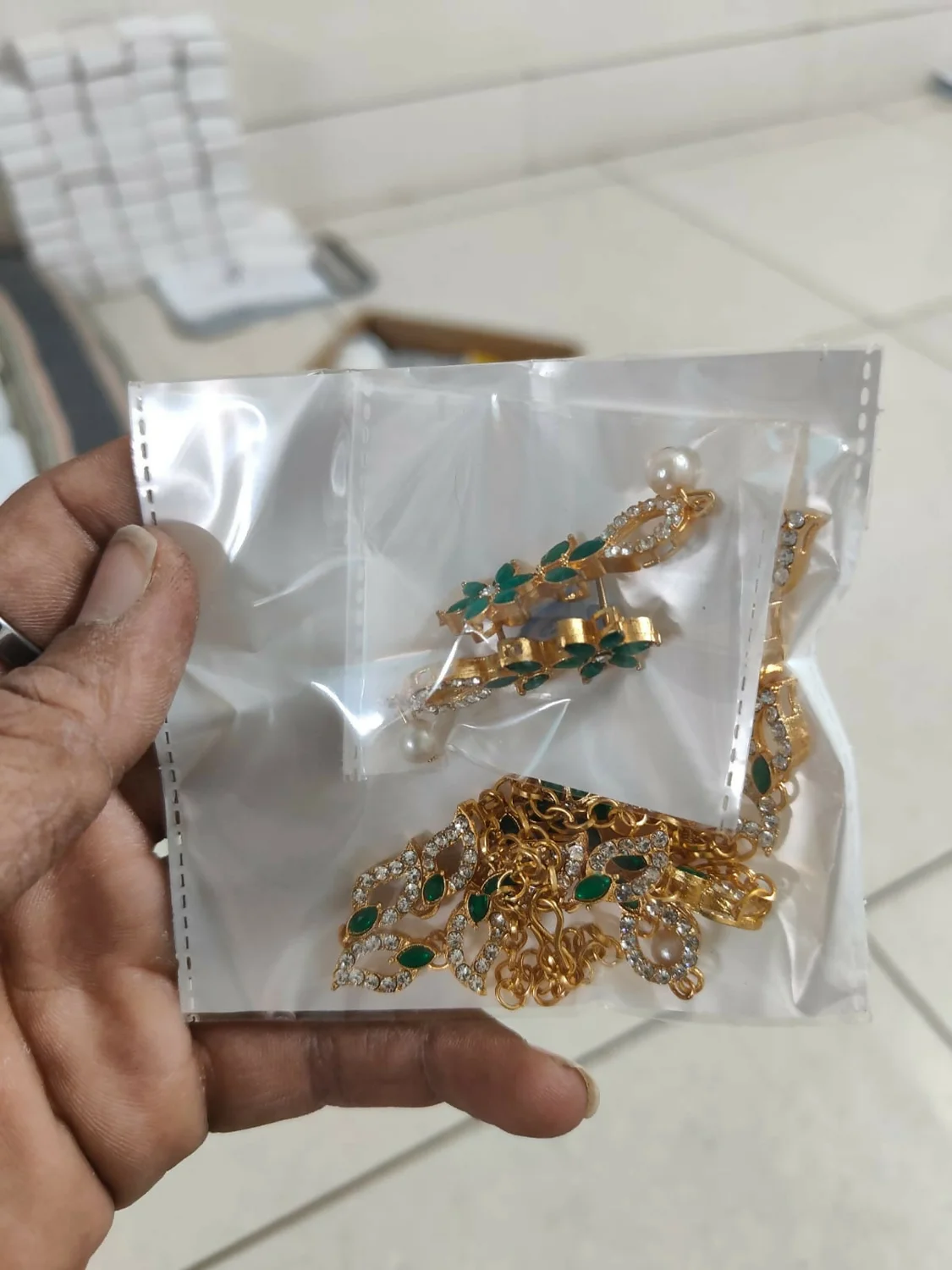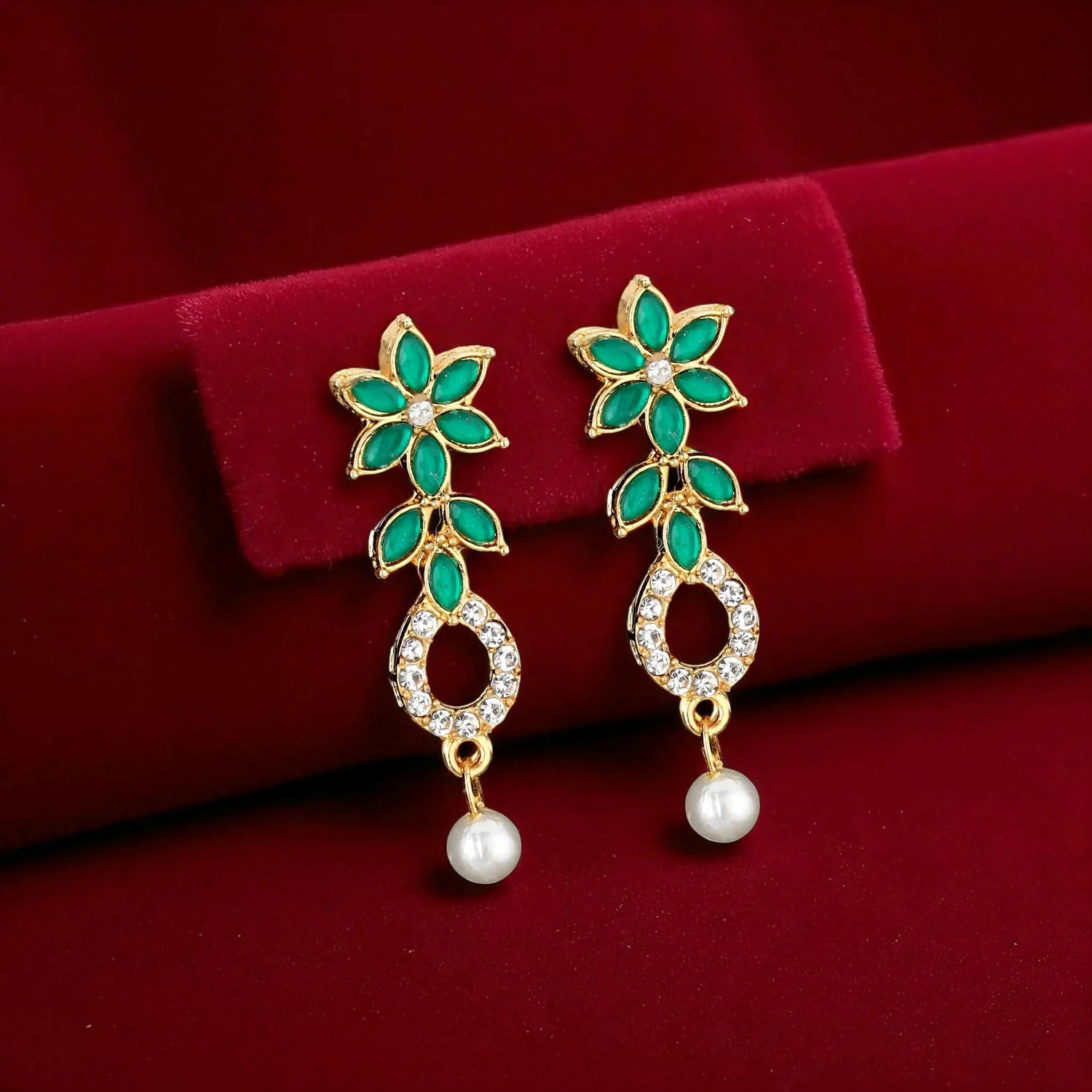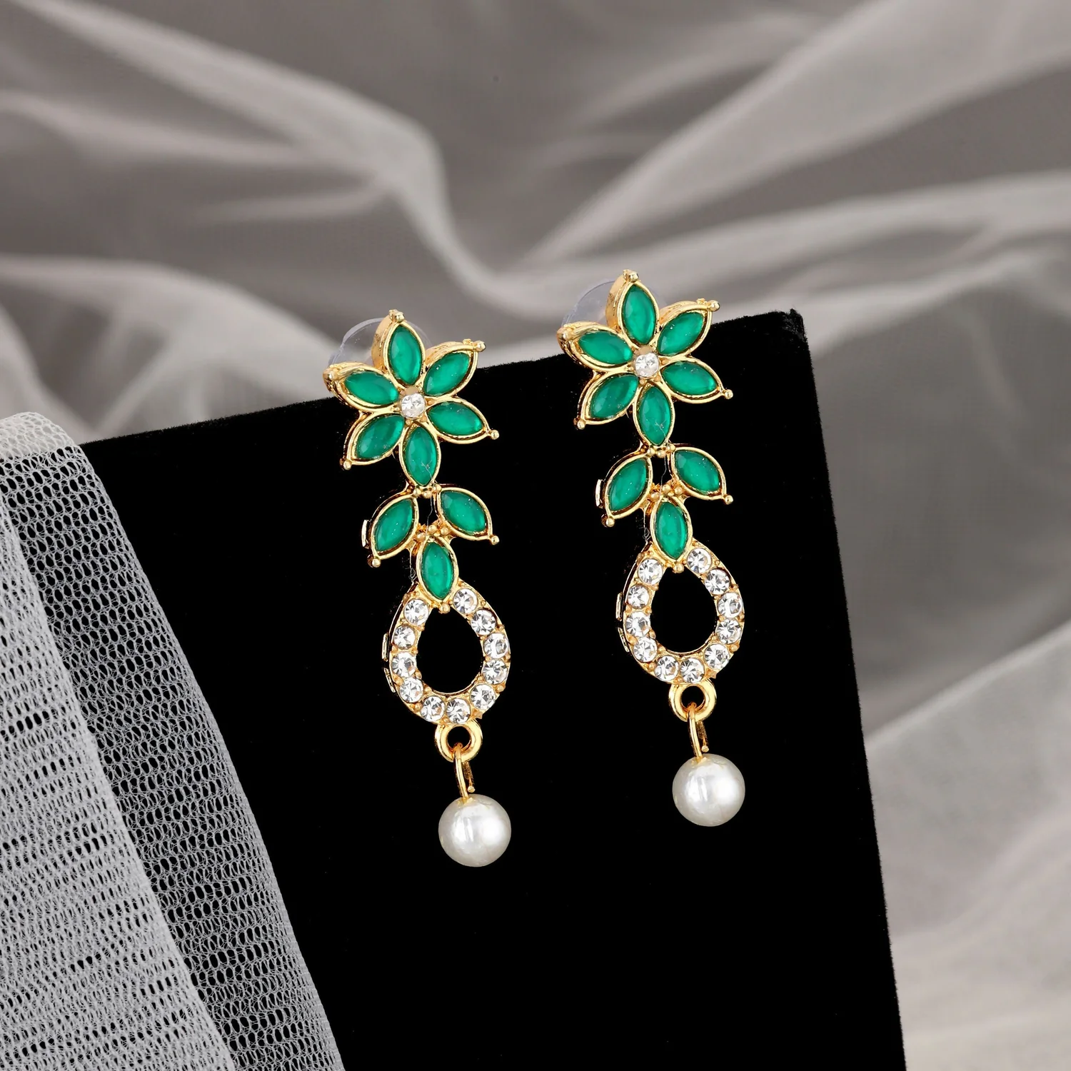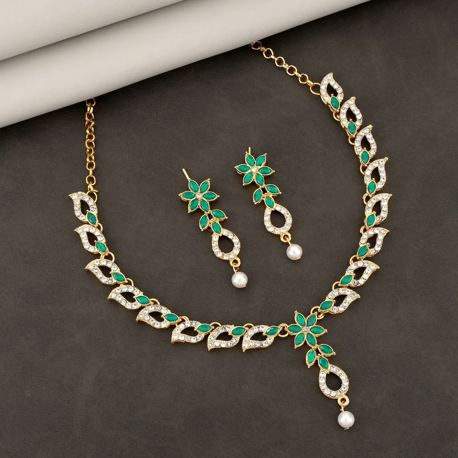 Be the first to review Emerald Green & Crystal Leaf Motif Necklace Set with Pearl Drop!