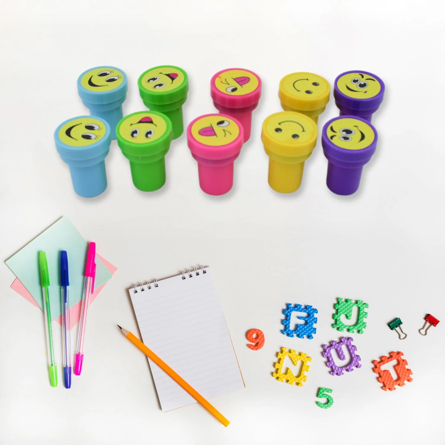 Emoticon Stamps 10 pieces in Round Shape Stamp for Kids Theme Stamps for School Craft & Prefect Gift for Teachers, Parents, and Students (Multicolor / 10 Pc)