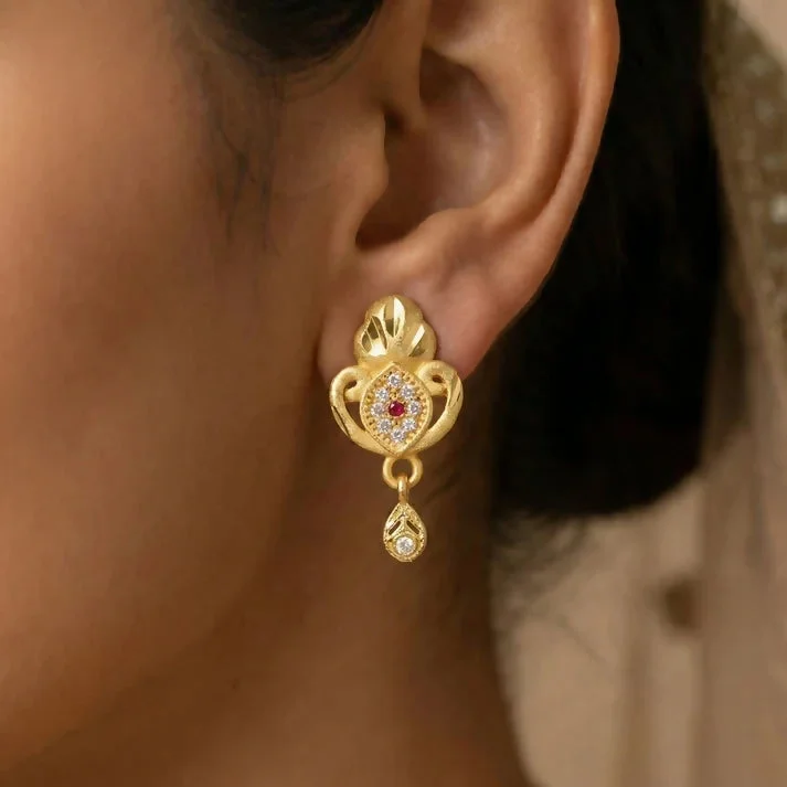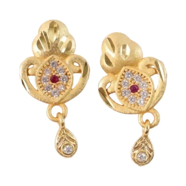 Be the first to review Ethnic Floral Motif Gold Stud Earrings With Stone Center And Elegant Drop Finish!