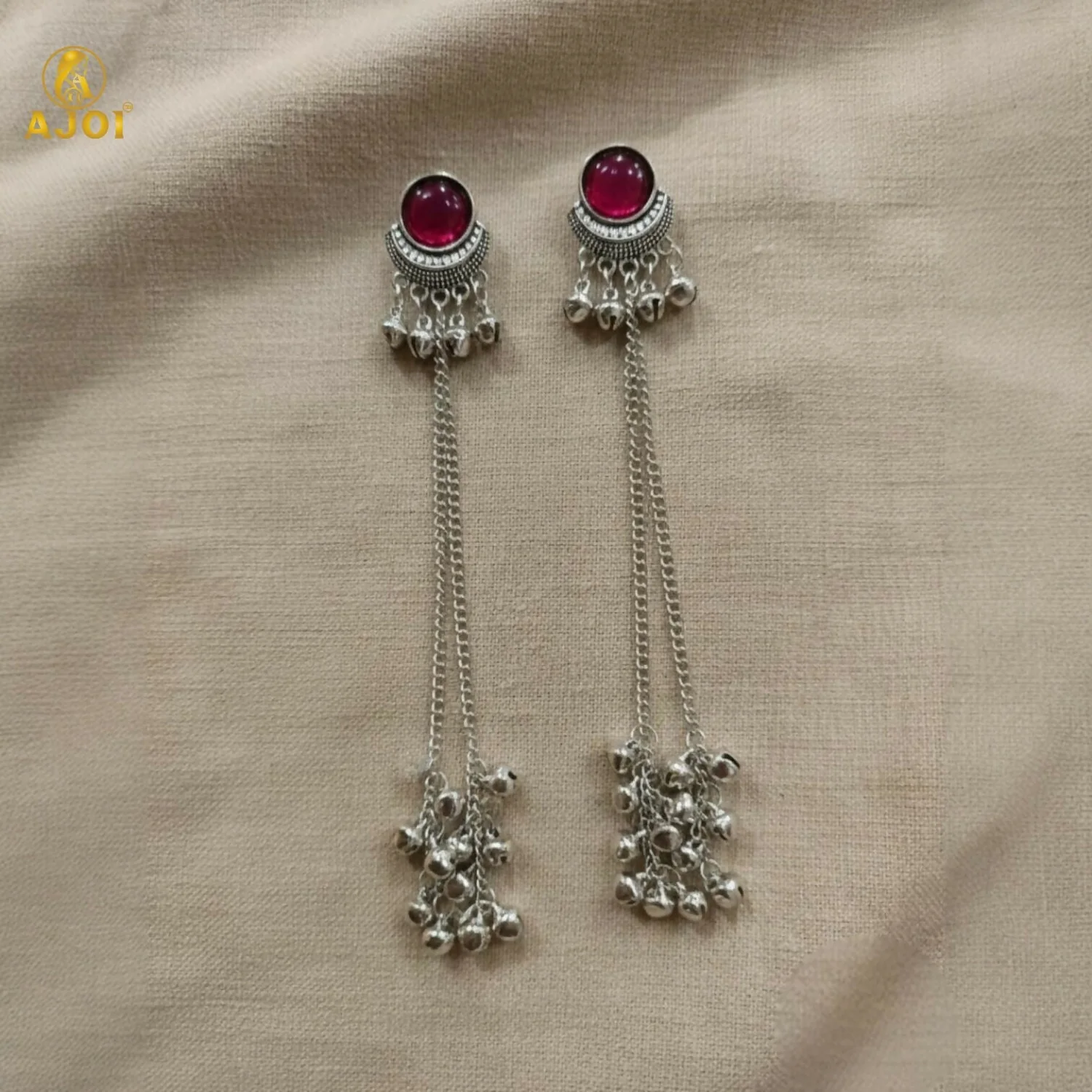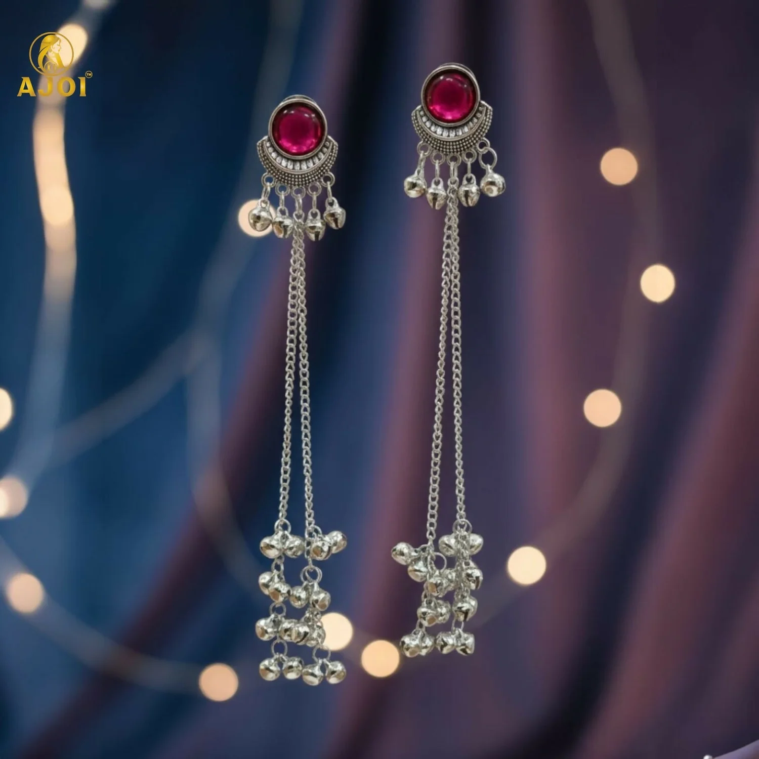 Be the first to review Ethnic Round Design Silver Plated Long Earrings with Ghungroo Drops!