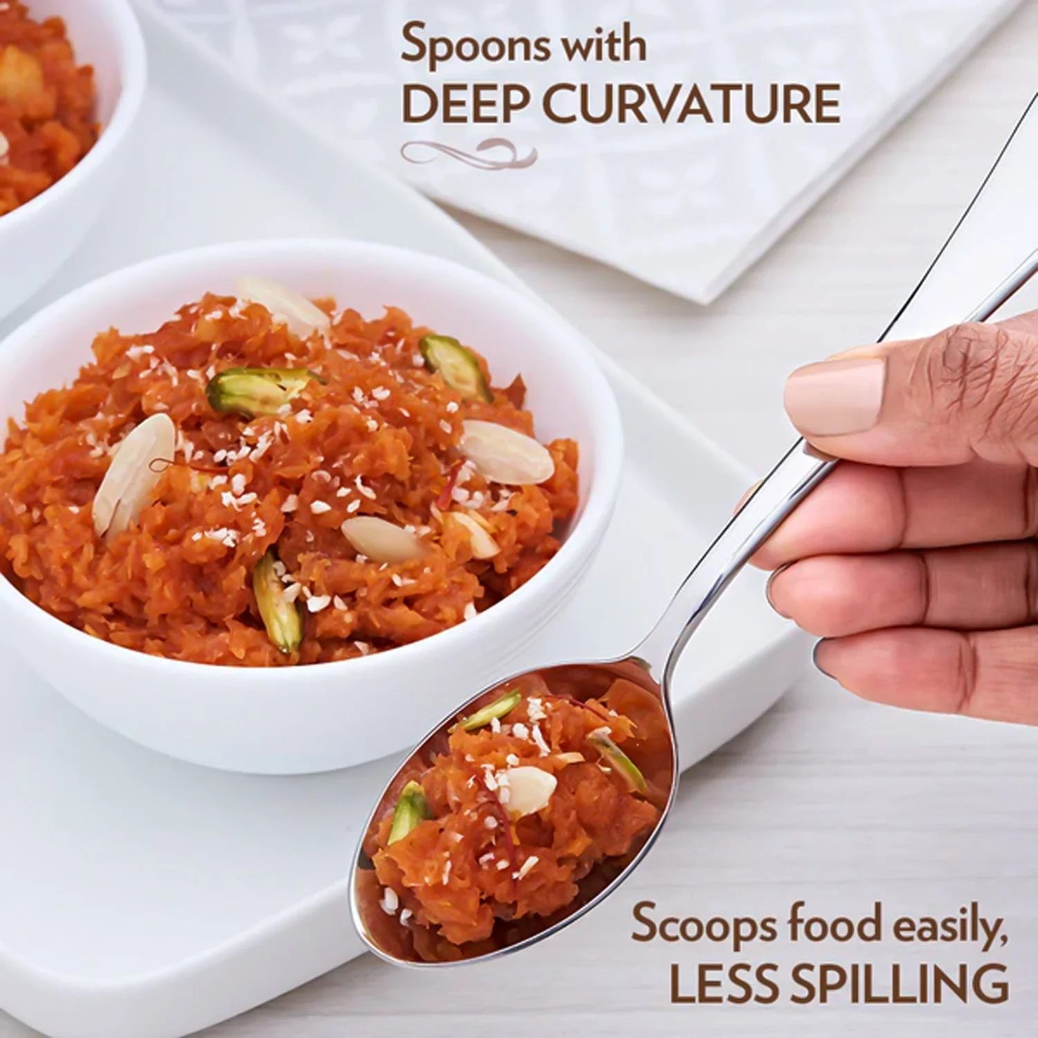 Upgrade your daily table setup with this practical 3-piece spoon set designed for comfortable eating and neat serving. Each spoon features a smooth, oval bowl that fits naturally in the mouth and a gently curved handle that feels balanced in the hand. The rust-resistant finish cleans up in seconds and keeps its shine after repeated washes, making these spoons reliable for home meals, tiffin use, cafés, and office pantries. Durable yet lightweight, they stack compactly in drawers and suit everything from breakfast cereal and desserts to dal, rice, and one-pot meals.