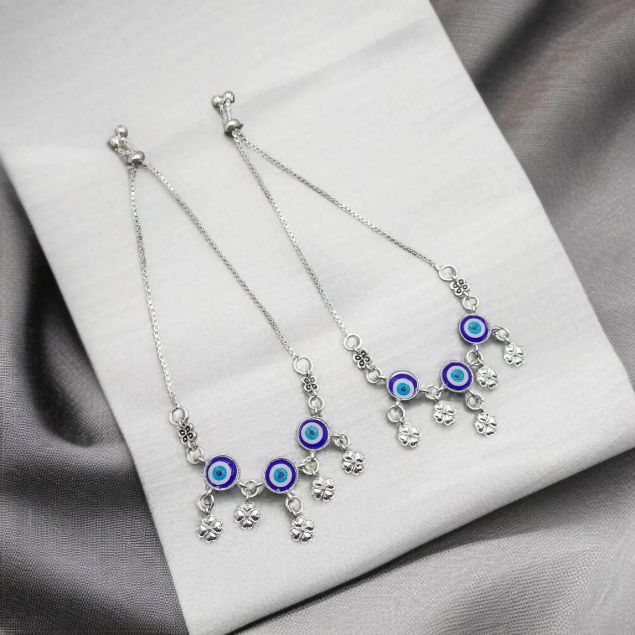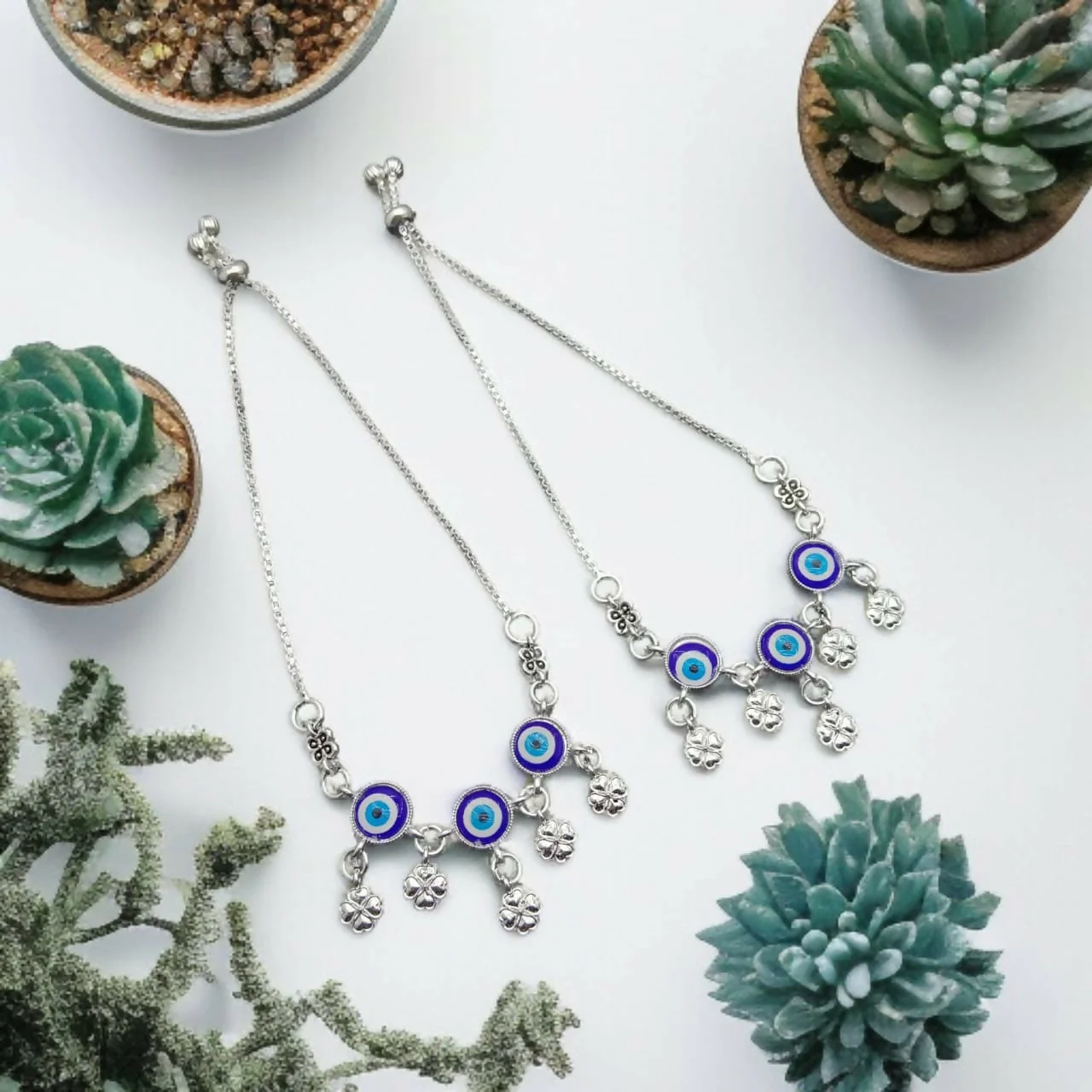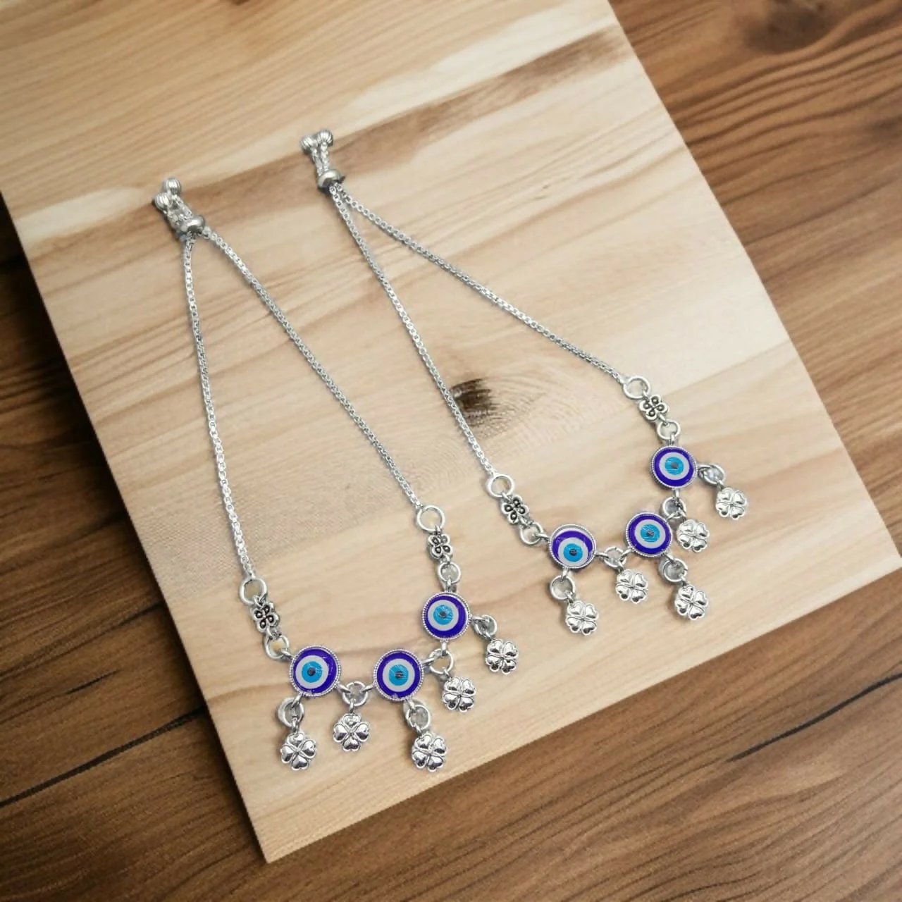 Be the first to review Evil Eye & Four-Leaf Clover Charm Adjustable Silver Anklets!