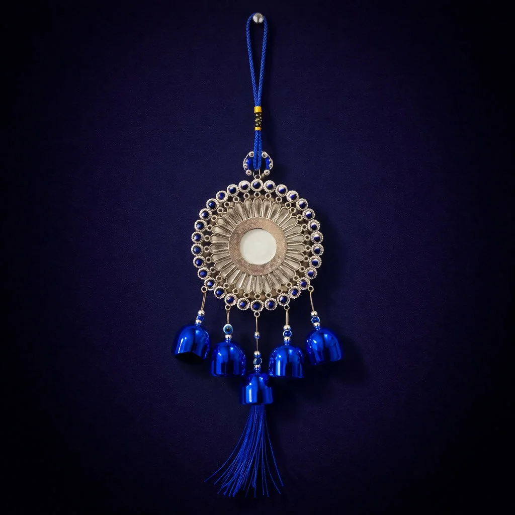 Bring positivity, harmony, and decorative charm to your space with this beautifully crafted Evil Eye hanging décor. Designed with intricate metal detailing, protective eye motifs, and melodic bells, this hanging is believed to ward off negative energy while enhancing your home aesthetics. Perfect for entrances, balconies, living rooms, prayer corners, or car interiors, it adds a spiritual yet elegant touch to everyday décor. A thoughtful gift choice for housewarming, festive occasions, or loved ones.
