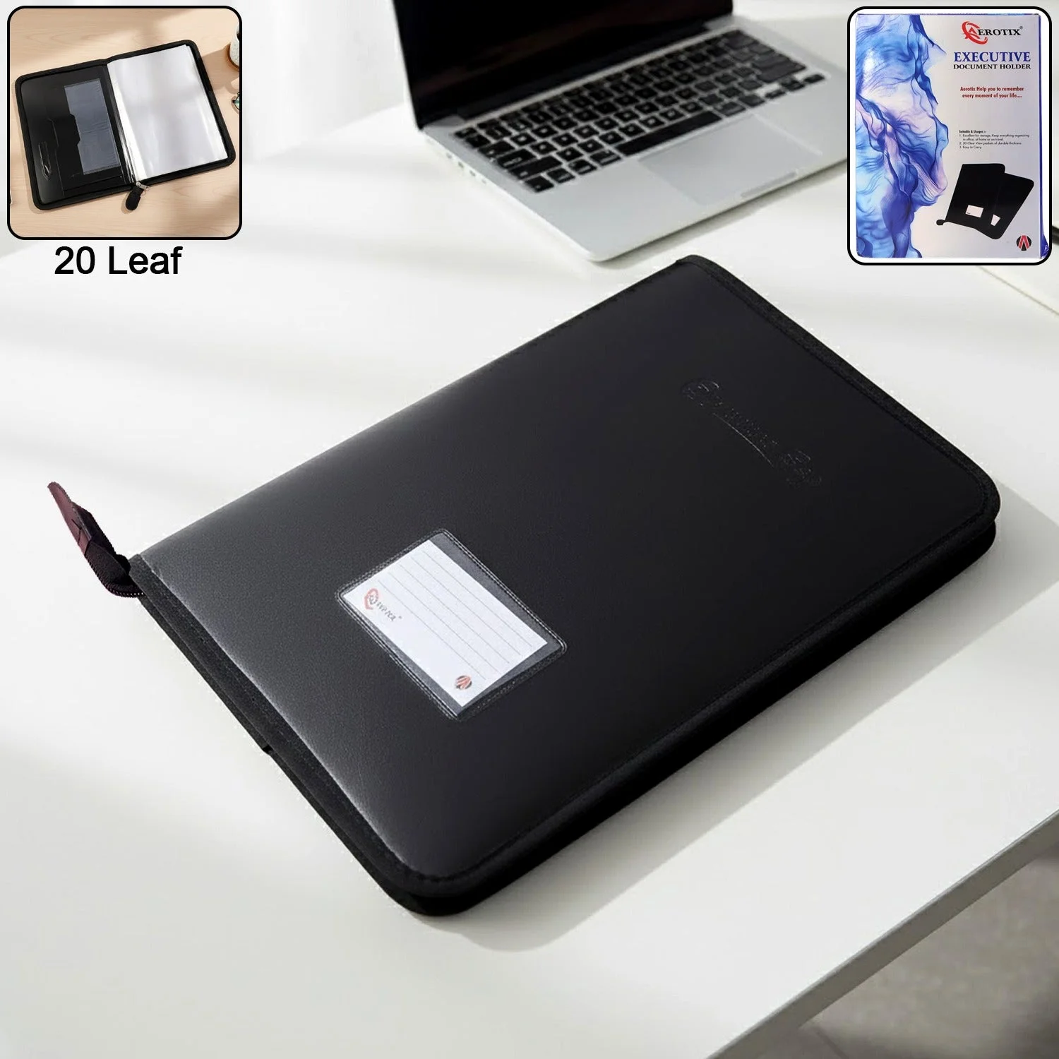 This executive zipper document file folder is designed to keep important papers neatly organized and well protected, featuring 20 transparent sleeves that allow quick viewing and easy access to documents, certificates, reports, and articles; the smooth zip-around closure ensures secure storage while preventing papers from slipping out, and the inner compartments provide space for holding notes or small stationery items, making it ideal for office professionals, students, meetings, interviews, and travel use, offering a clean, professional look with reliable everyday functionality.