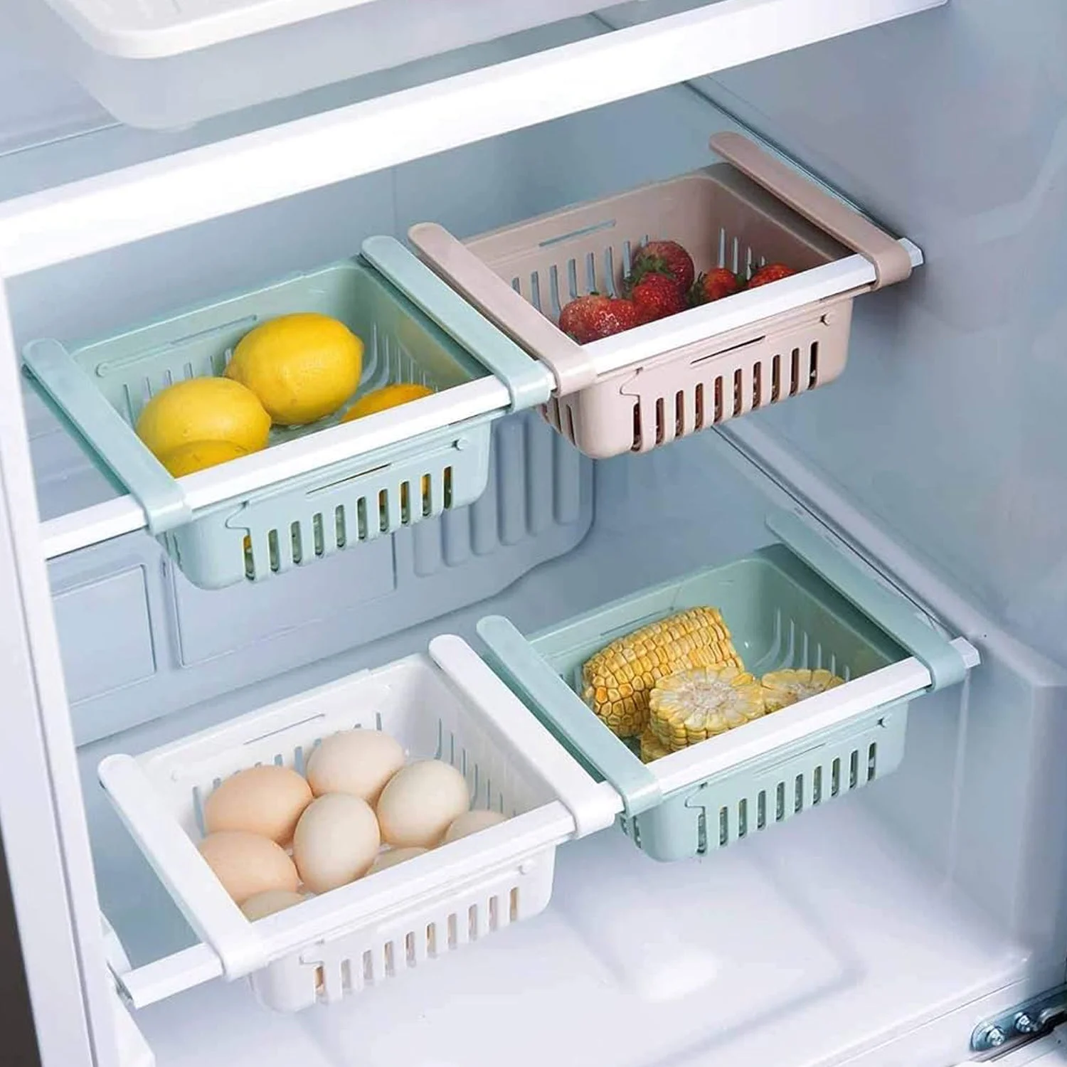 Expandable Adjustable Multipurpose Fridge Storage Basket Under Shelf Fridge Organiser Rack Space Saver Refrigerator Sliding Drawers (1 Pc)