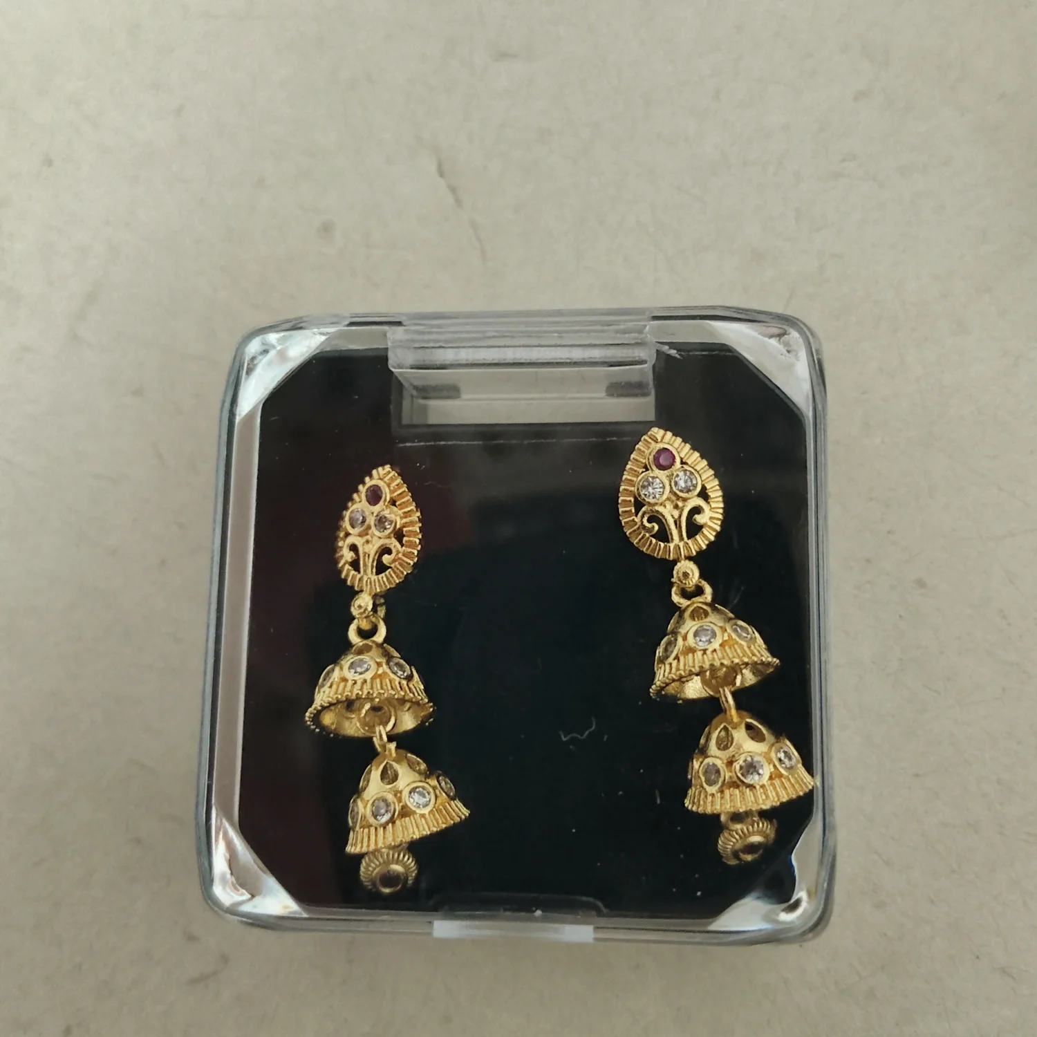 Be the first to review Exquisite Gold-Plated Double Layer Jhumka Earrings with Ruby and Stone Accents!