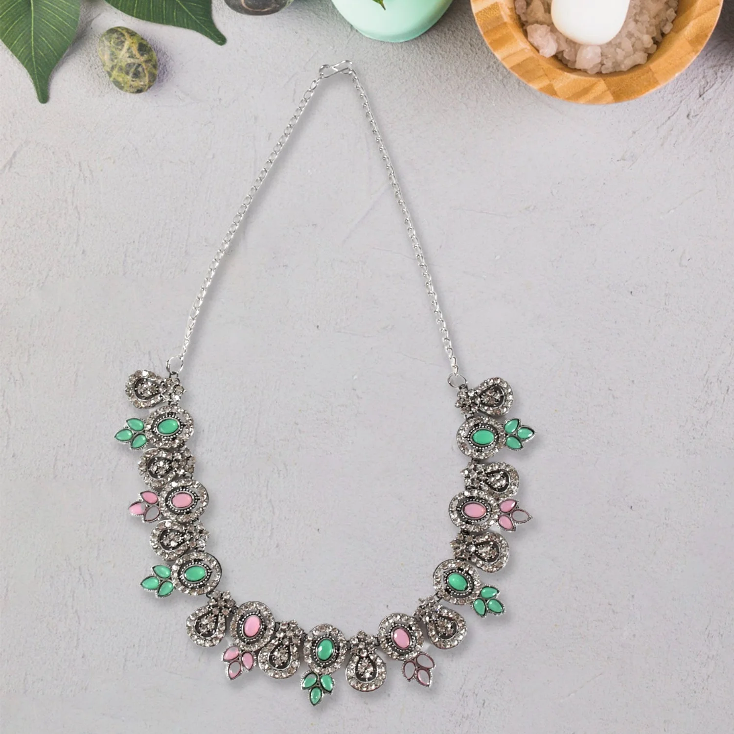 Be the first to review Exquisite Pink & Green Color Necklace Set!