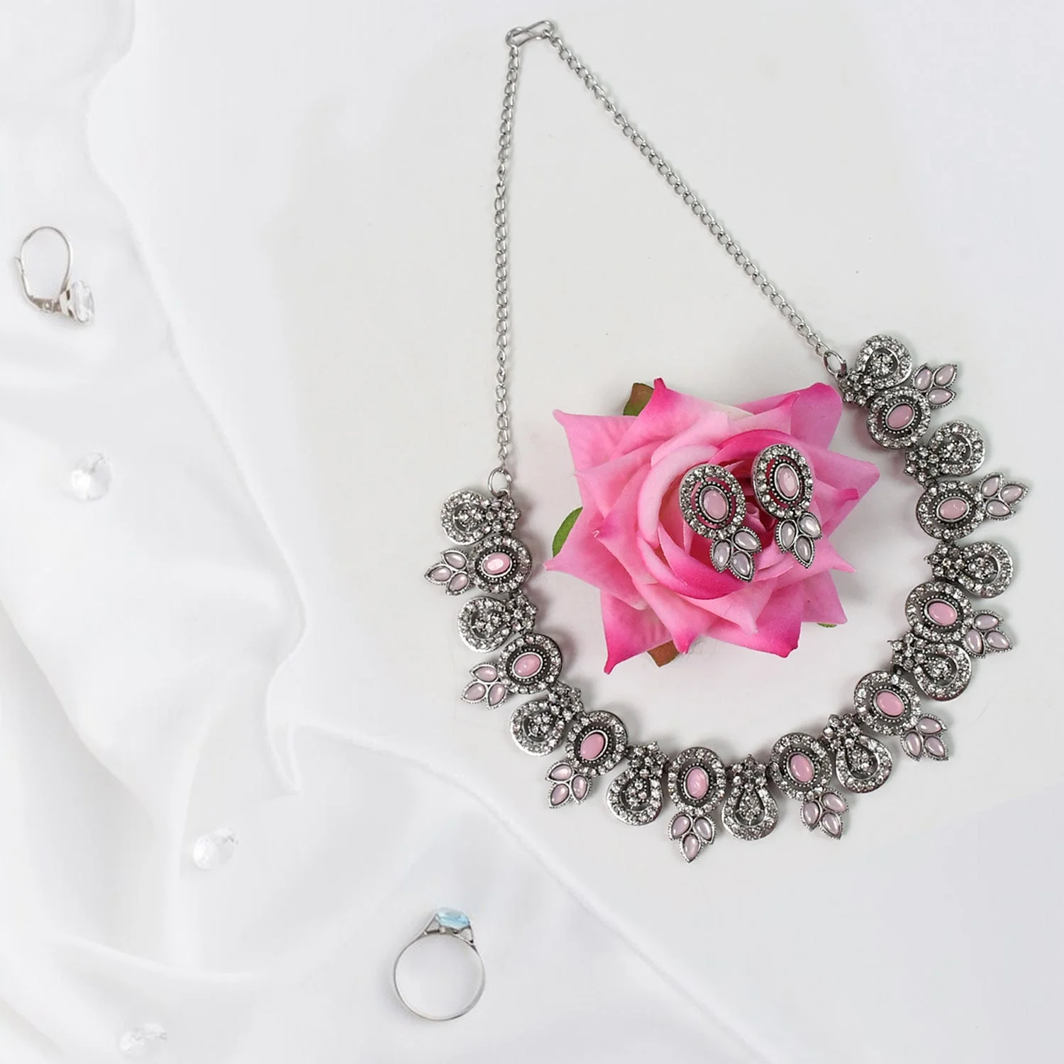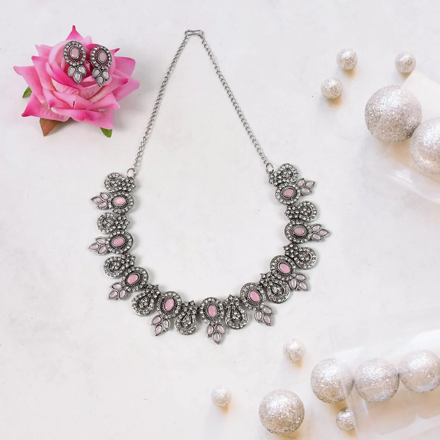 Be the first to review Exquisite Pink & White Diamond Necklace Set - Radiant Elegance!