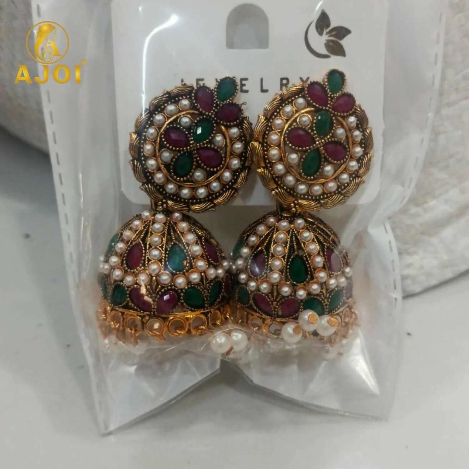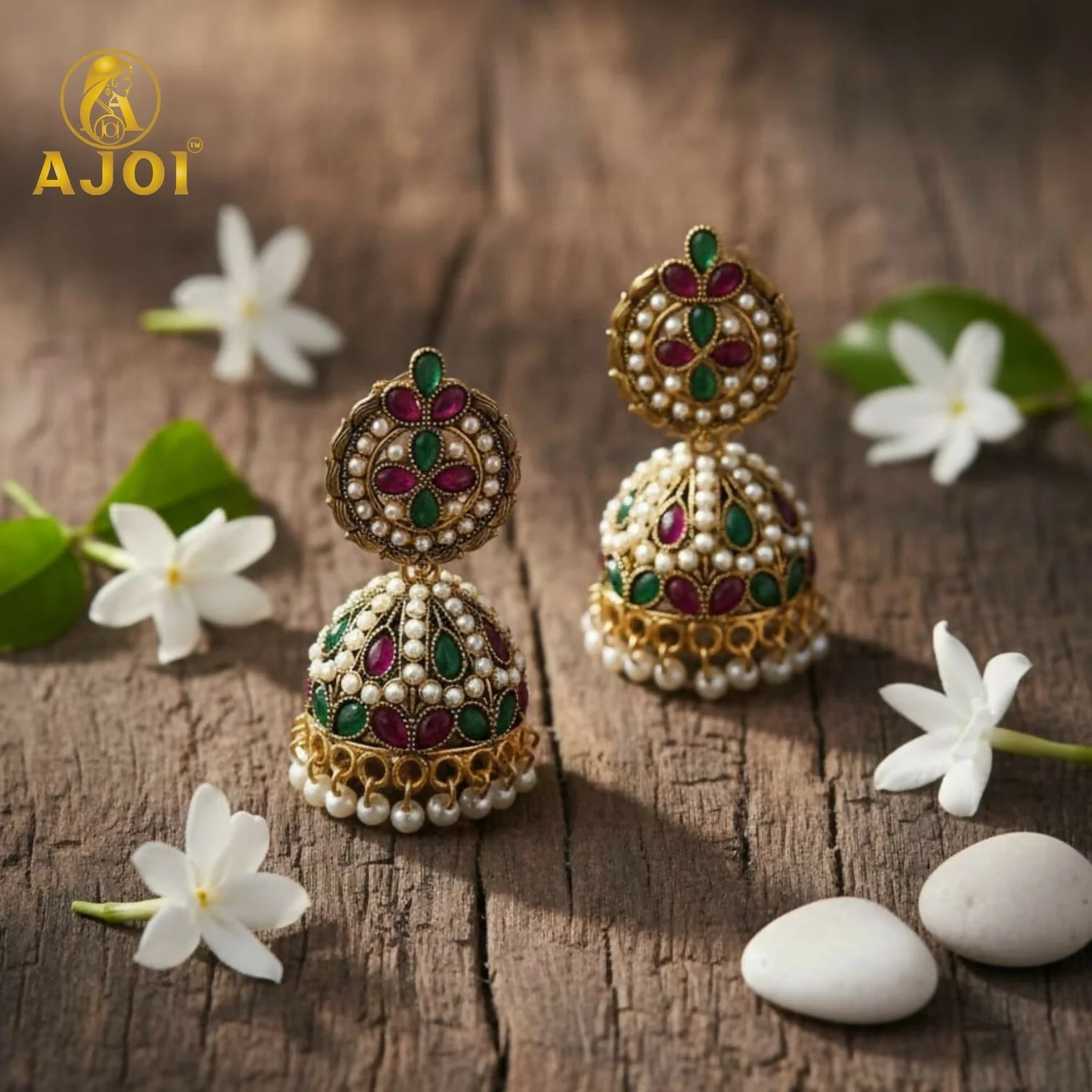 Add a touch of royal sophistication to your jewelry collection with these timeless jhumkas—where tradition meets elegance in every detail.