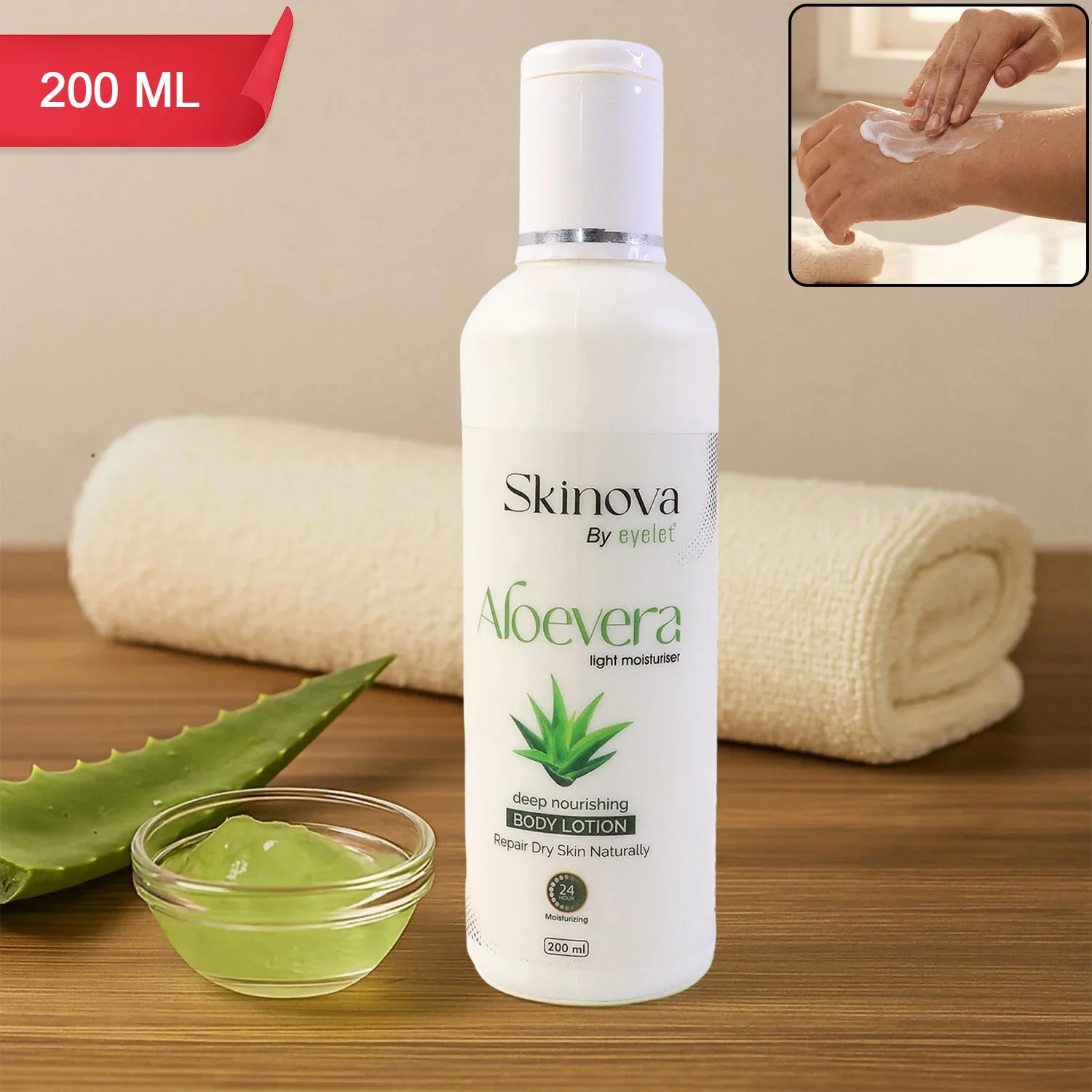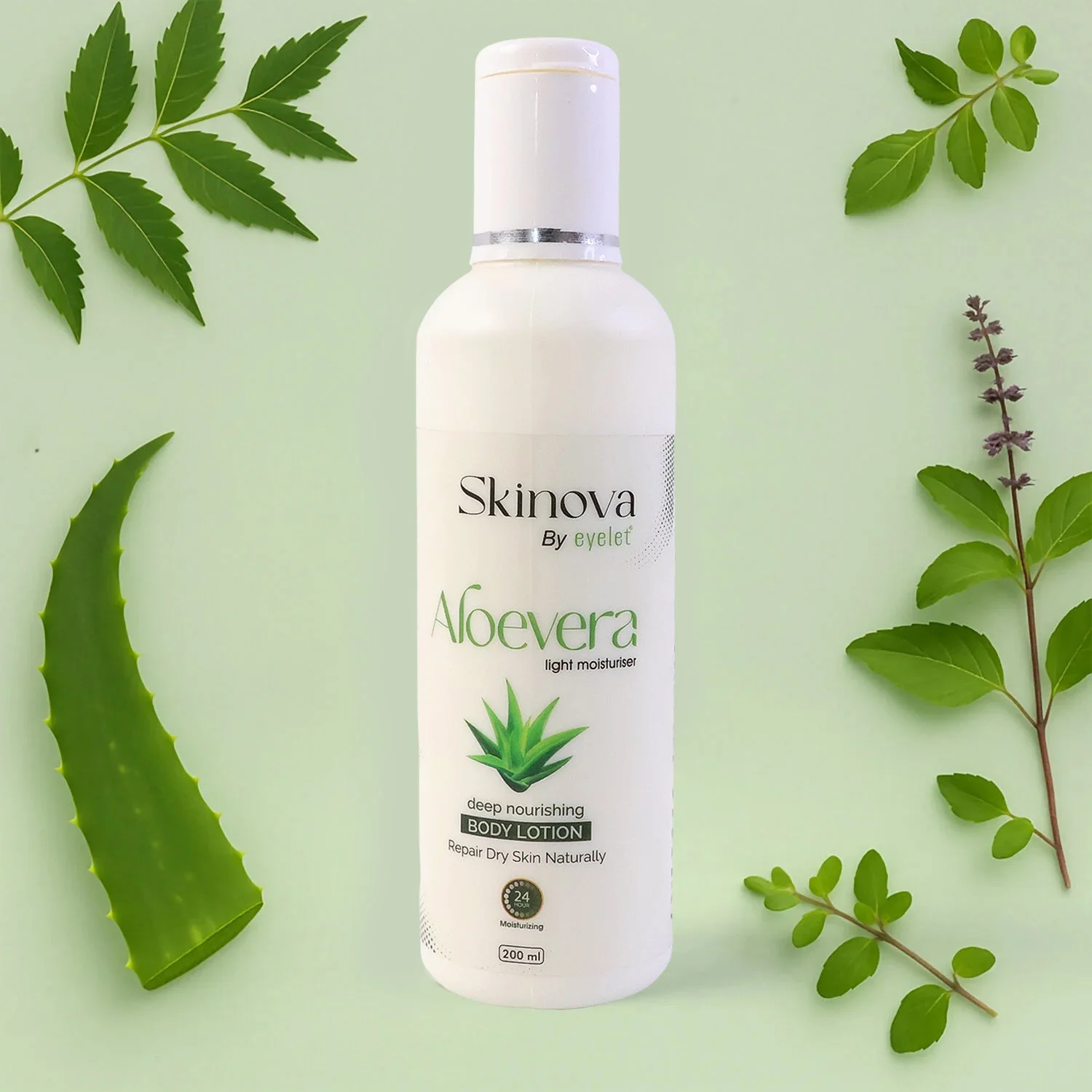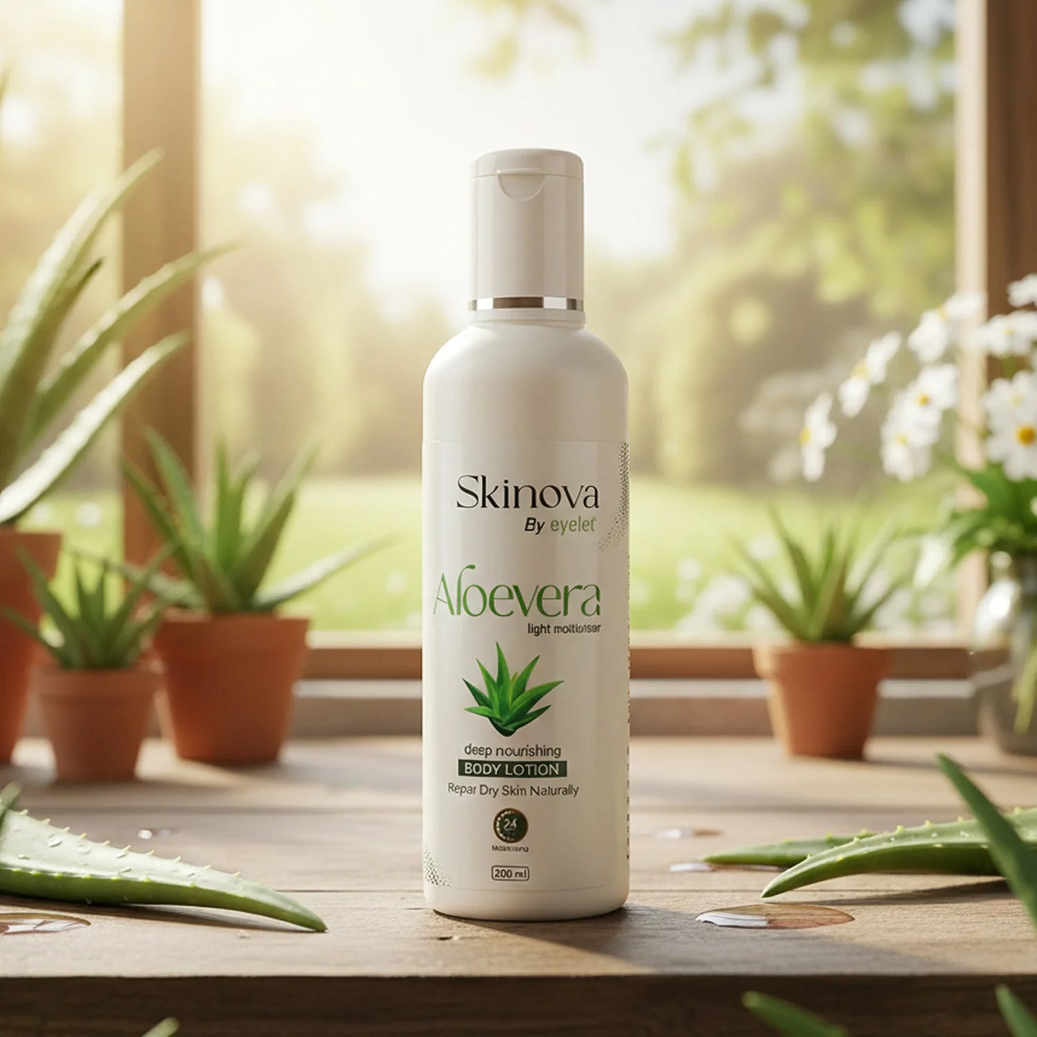 Eyelet Aloe Vera Body Lotion is a lightweight yet deeply nourishing moisturizer enriched with aloe vera extracts. It helps repair dry skin naturally, providing 24-hour hydration and long-lasting softness. The non-greasy formula absorbs quickly, leaving skin smooth, refreshed, and healthy-looking. Perfect for daily use on all skin types.