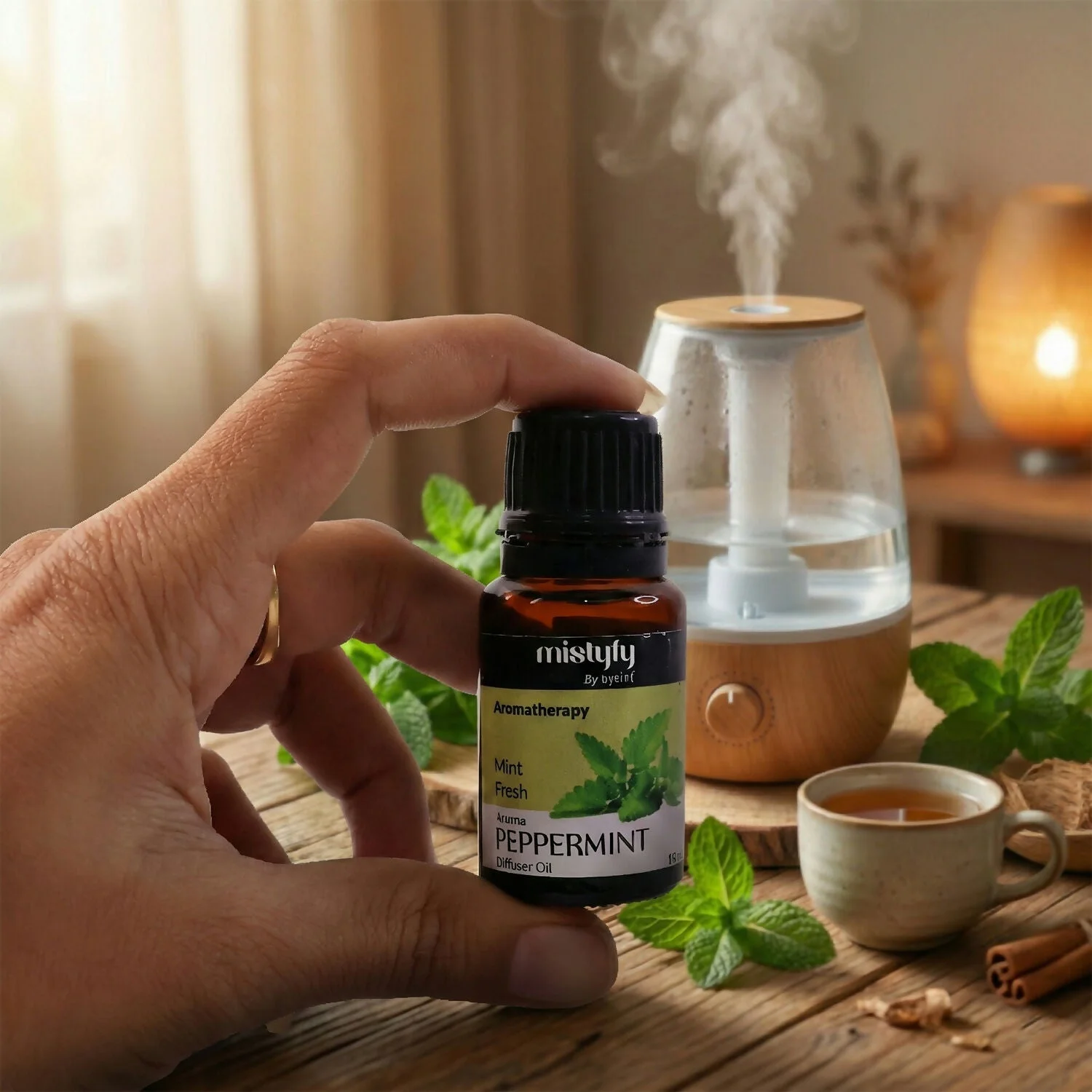 This peppermint diffuser oil is designed to create a fresh and refreshing atmosphere in your living space. Featuring a crisp mint aroma, it blends smoothly with aroma diffusers and humidifiers to enhance everyday environments such as bedrooms, living rooms, workspaces, or relaxation areas. The oil disperses evenly to provide a clean, uplifting fragrance that complements calm and mindful settings. Ideal for daily use, it helps create a pleasant ambience during work, rest, or leisure moments. Its compact bottle design allows easy handling and controlled usage.