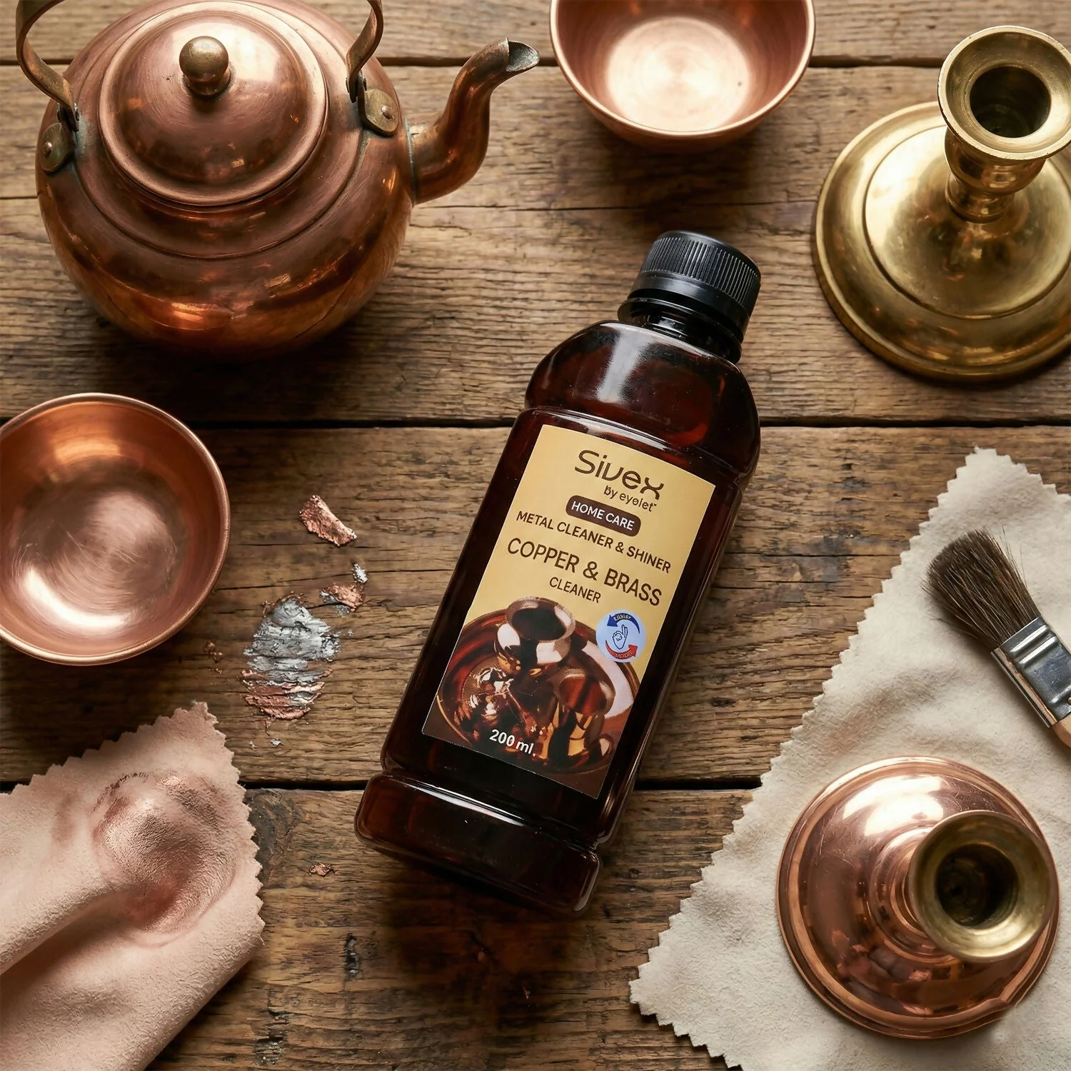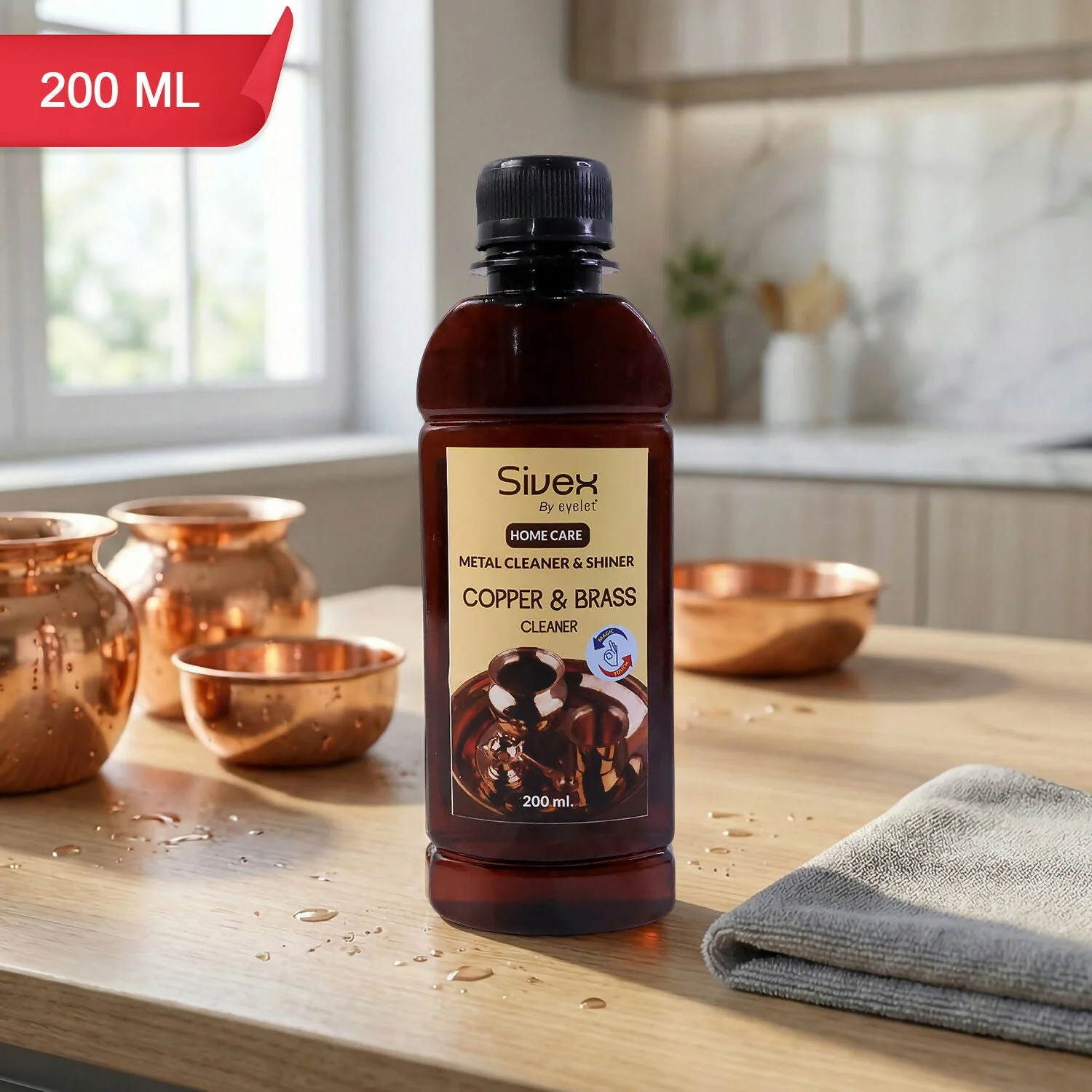 Sivex by Eyelet Copper & Brass Cleaner is specially formulated to clean and restore the natural shine of copper and brass surfaces. It helps remove dullness, stains, and oxidation from frequently used household and decorative metal items. Suitable for copper utensils, brass puja thali, kalash, diyas, antique showpieces, decorative vessels, and home decor articles. The liquid is easy to apply and works effectively with simple wiping, making metal maintenance quick and convenient. An ideal home care solution for keeping copper and brass items clean and well-maintained with regular use.