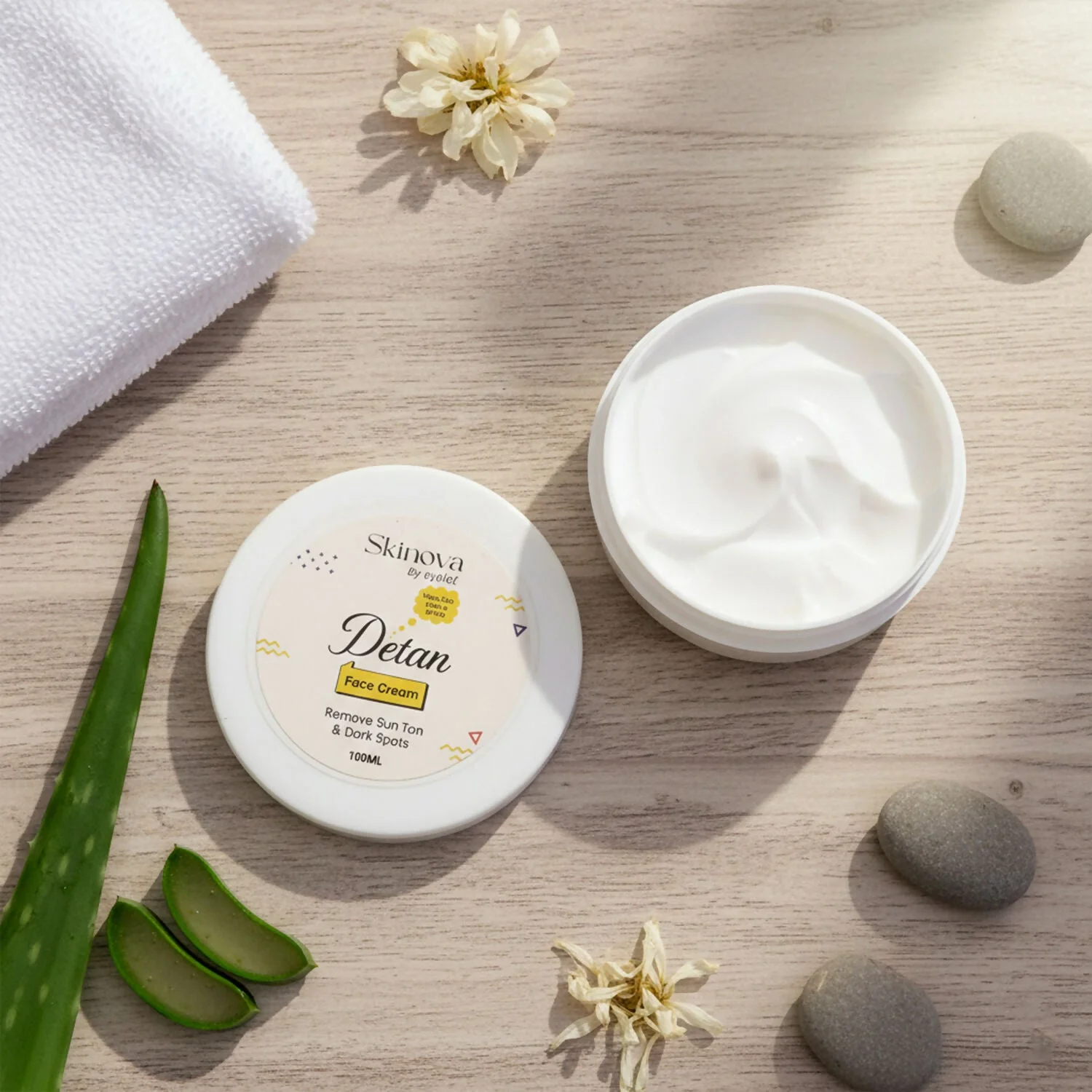 Eyelet Skinova Detan Face Cream is designed to help reduce visible sun tan and the appearance of dark spots caused by daily exposure. The cream has a smooth, lightweight texture that spreads easily and absorbs well without leaving a heavy feel on the skin. Regular use supports a more even-looking complexion and helps maintain a fresh, well-cared appearance. Suitable for everyday skincare routines, this face cream is ideal for those looking for simple and effective detan care with the trusted quality of Eyelet.