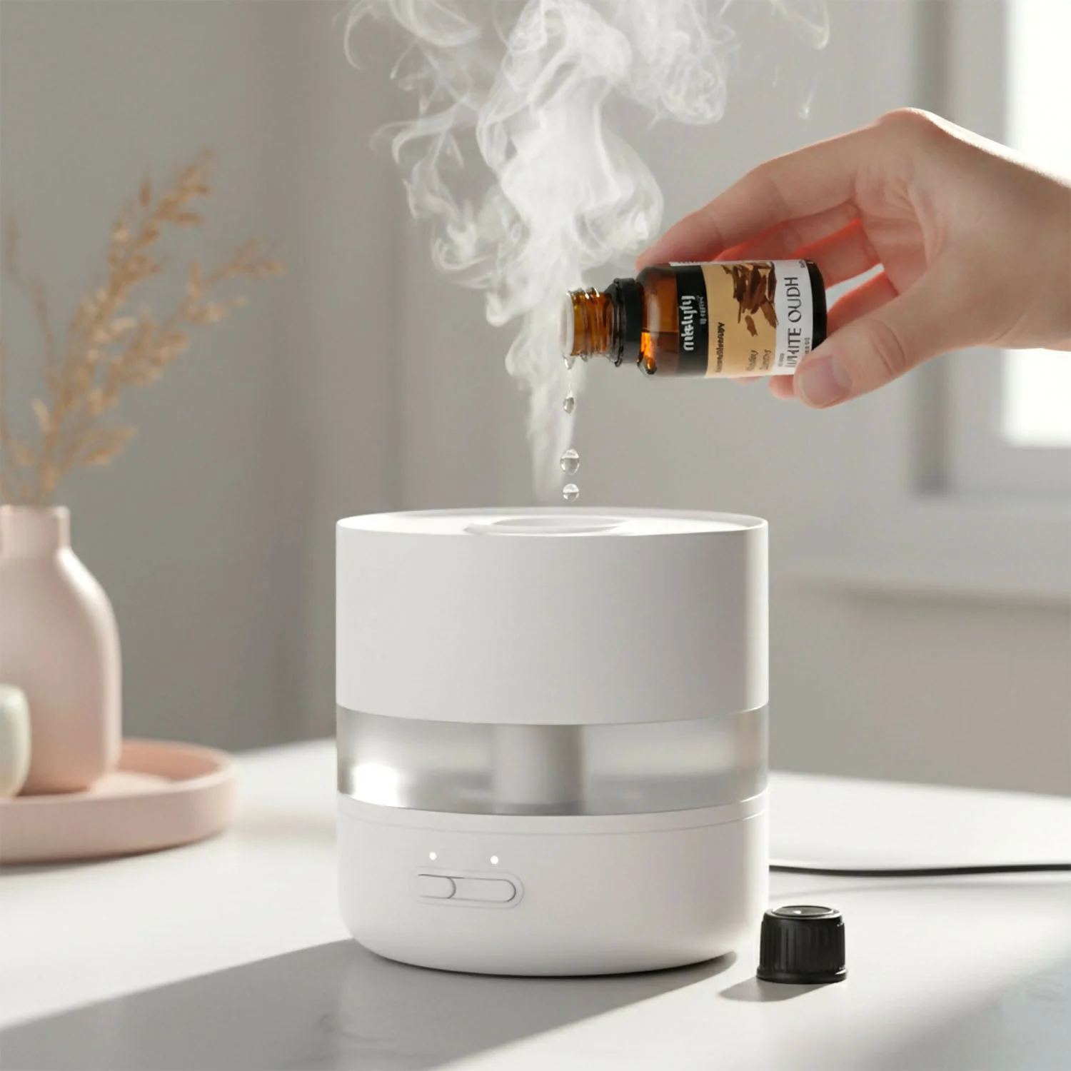 Experience a soothing and luxurious aroma with Eyelet Mistify White Oudh Aromatherapy Diffuser Oil, specially crafted for use in humidifiers and aroma diffusers. This musky and earthy fragrance blends deep oudh-inspired notes that gently disperse through mist, creating a calming and balanced indoor environment. When used in humidifiers, it enhances the mist with a warm, comforting scent that helps relax the mind and refresh the atmosphere. Ideal for bedrooms, living spaces, offices, and wellness areas, it supports a peaceful ambiance during rest, meditation, or daily routines. A perfect choice for elevating your humidifier experience with a refined and long-lasting fragrance.