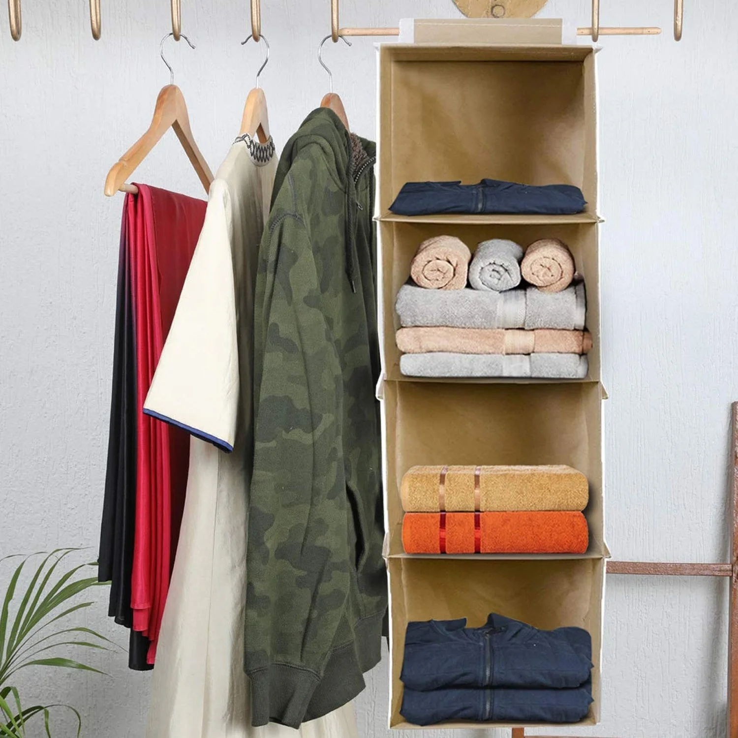 Fabric Hanging 4-Shelf Closet Cloth Organizer