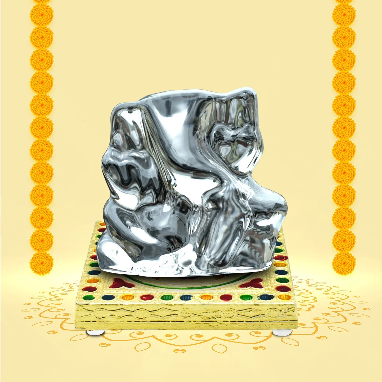 In fact, these variations bestow the charm, character, and authenticity to the creations. This beautifully handmade god showpiece adds a beautiful look to your home and temple. An ideal choice for keeping Idols, Pooja thali, Kalash, Lamp/diya, Incense stick holder. The enchanting design of this chowki makes it an aesthetic showpiece also. Multicolour, amazingly handcrafted with very clean finishing. Place your favorite idol on the chowki within your home temple. This chowki is made from wooden. Festival Decoration Item with Attractive and Stylish Design and beautifully crafted, Pooja Items , Pooja Samagri