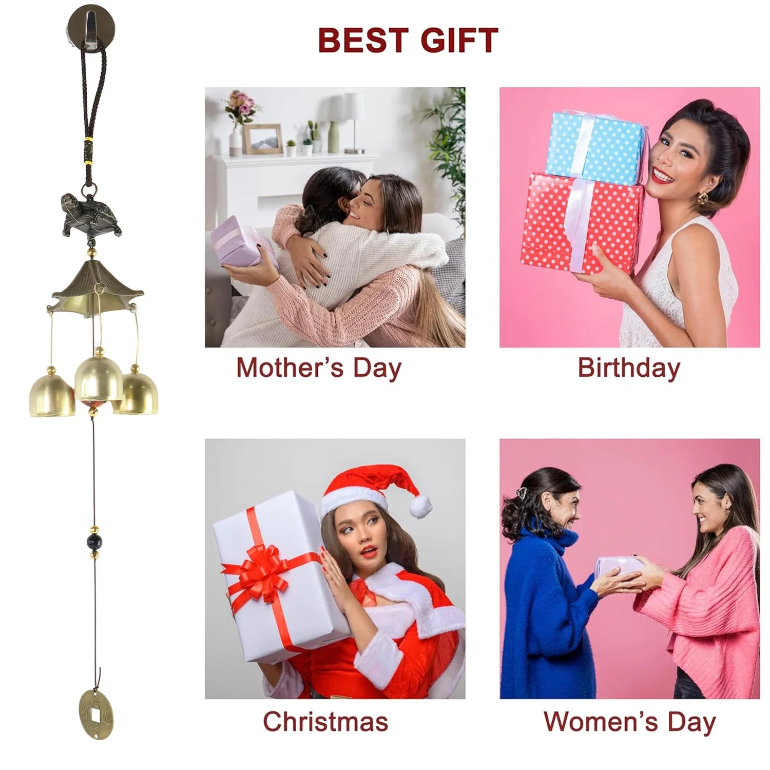 Melodic Tone: Three tuned metal bells deliver a gentle, soothing chime that calms the ambiance