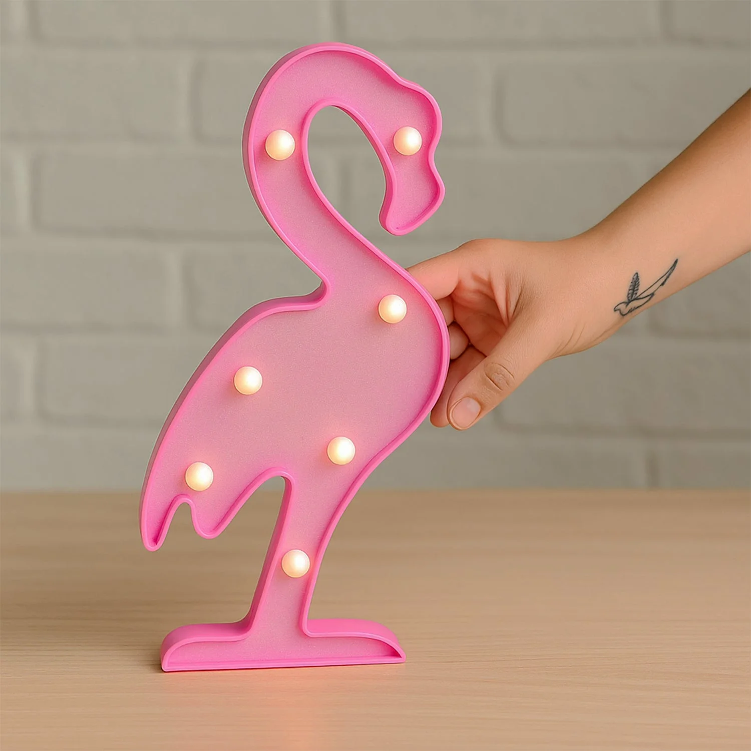 Flamingo Shape LED Decorative Night Light – Battery Operated Marquee Lamp for Kids Room, Bedroom, Party & Home Decoration