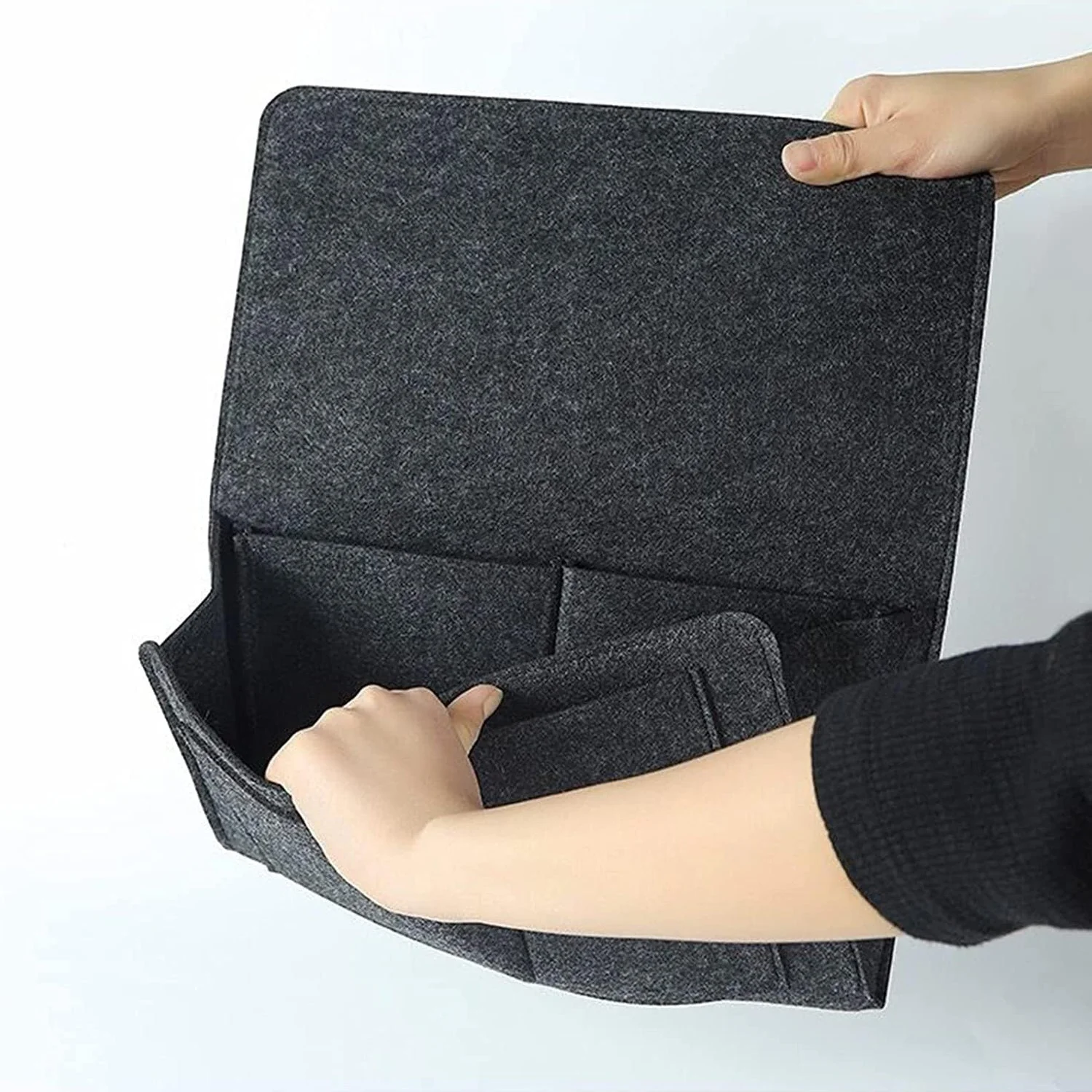 - Multipurpose Bedside Organizer Caddy : The felt bedside caddy organizer for your bedroom, living room, can create extra storage and tidy space, perfect for storing books, pens, remotes, cellphones, iPad, headphones, glasses, USB cables and so on.