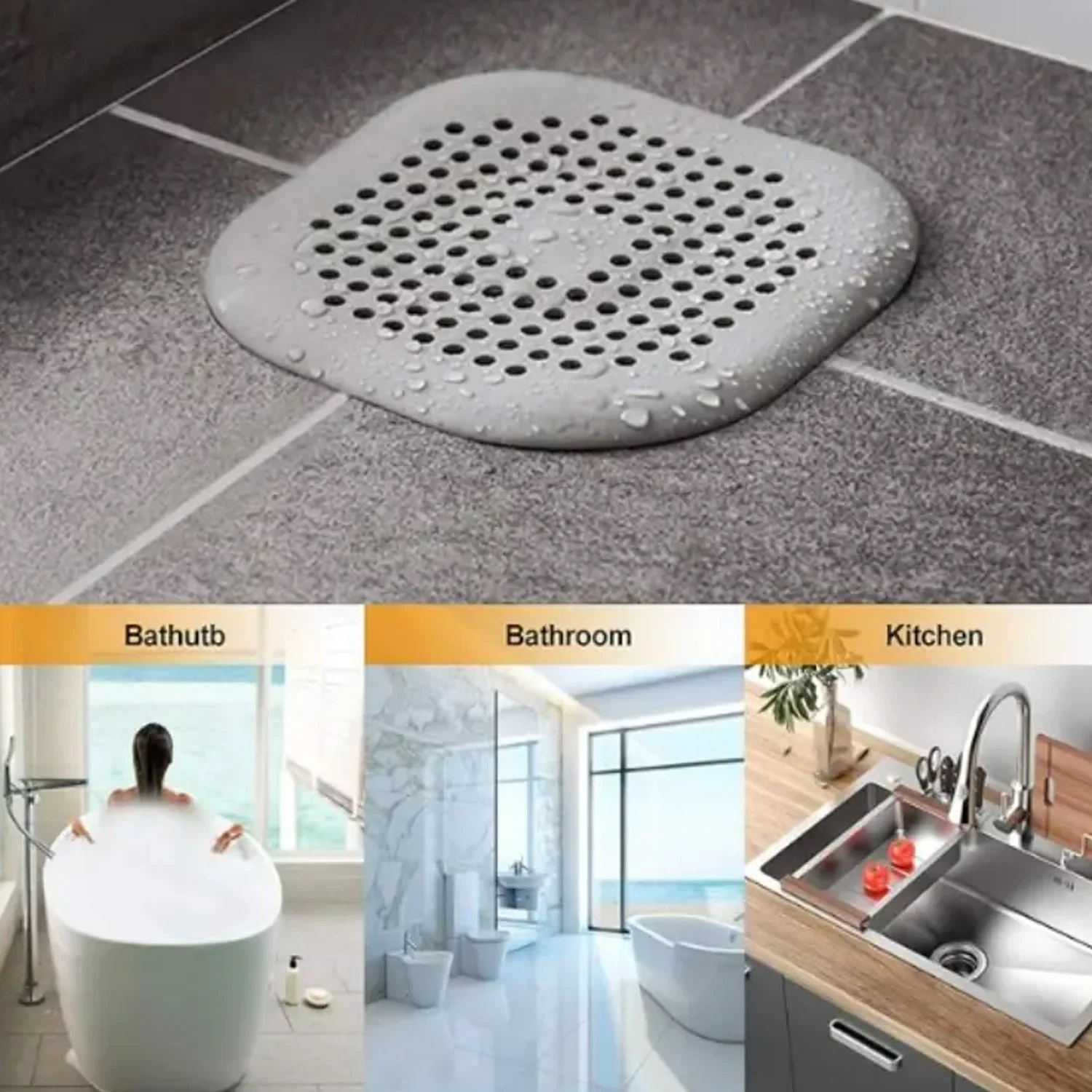 Keep your bathroom, shower, and kitchen drains free from clogs and blockages with this Flexible Silicone Drain Cover Strainer. Made from high-quality, soft silicone material, it molds effortlessly to flat surfaces and securely covers floor or sink drains. The small perforations efficiently trap hair, food particles, and debris while allowing water to flow through. Its anti-slip, washable, and reusable design makes it a hygienic and eco-friendly solution for everyday use.