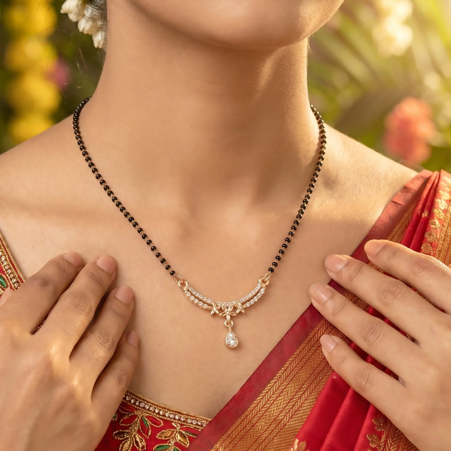 Be the first to review Floral Design Mangalsutra Necklace with Teardrop Pendant 1 Pc!