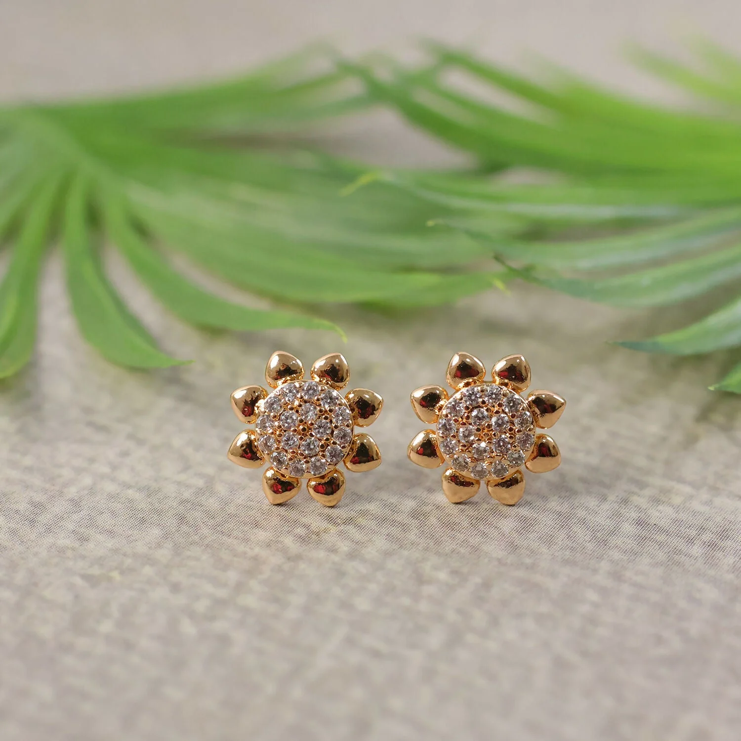 These elegant floral stud earrings feature a beautiful gold-tone finish with finely set CZ stones that create a sparkling flower design. The balanced shape and detailed stone arrangement give them a graceful yet eye-catching look. Designed for comfort and everyday wear, they pair effortlessly with casual outfits, ethnic wear, and party looks. The classic floral pattern makes them suitable for all age groups, from girls to women. A versatile jewellery choice that adds charm to daily styling and special occasions alike.