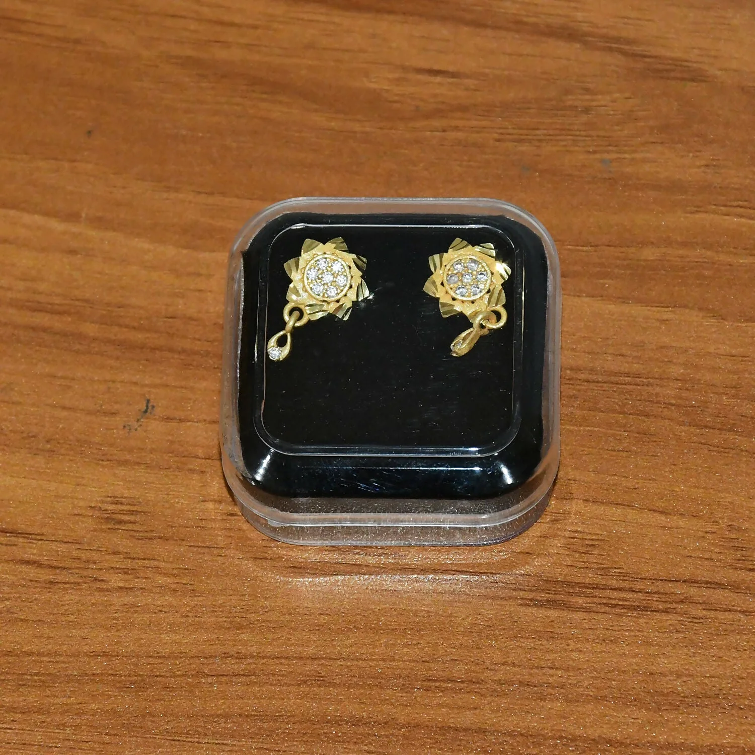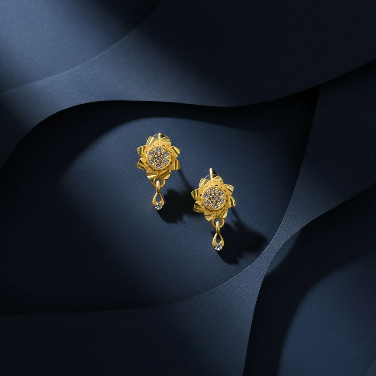Be the first to review Floral Inspired Gold Finish Drop Earrings with Sparkling Stone Detail!