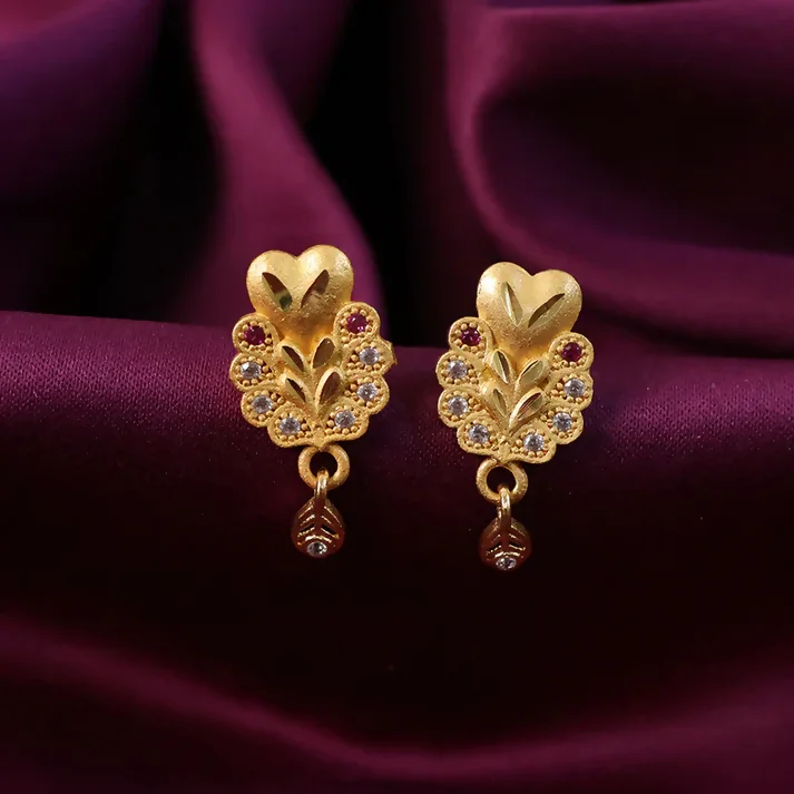 Be the first to review Floral Inspired Gold Stud Earrings With Central Stone And Teardrop Dangle Detail!