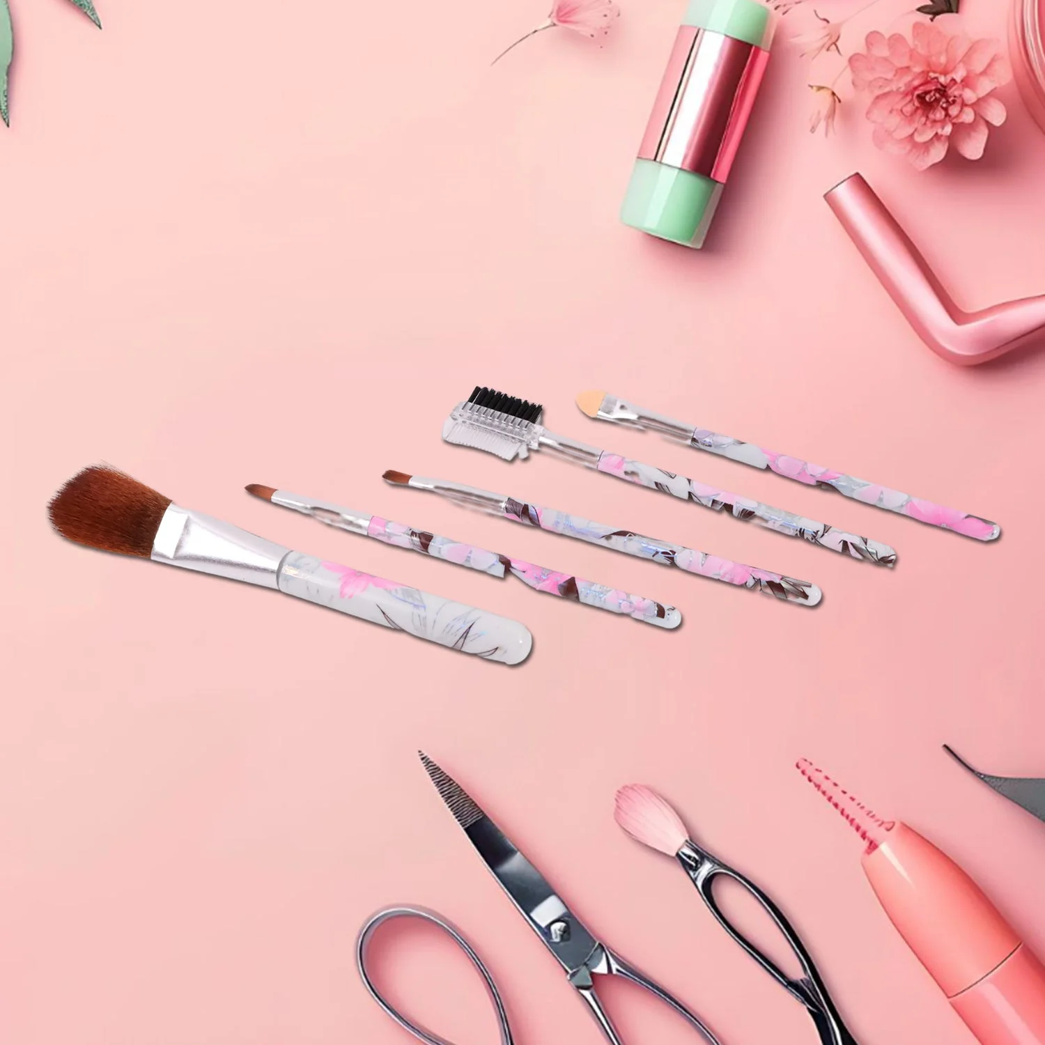 5-Piece Floral Makeup Brush Set for Eyes, Lips, and Face – Compact Cosmetic Tool Kit with Stylish Handles for Daily Beauty, Travel, and Beginners