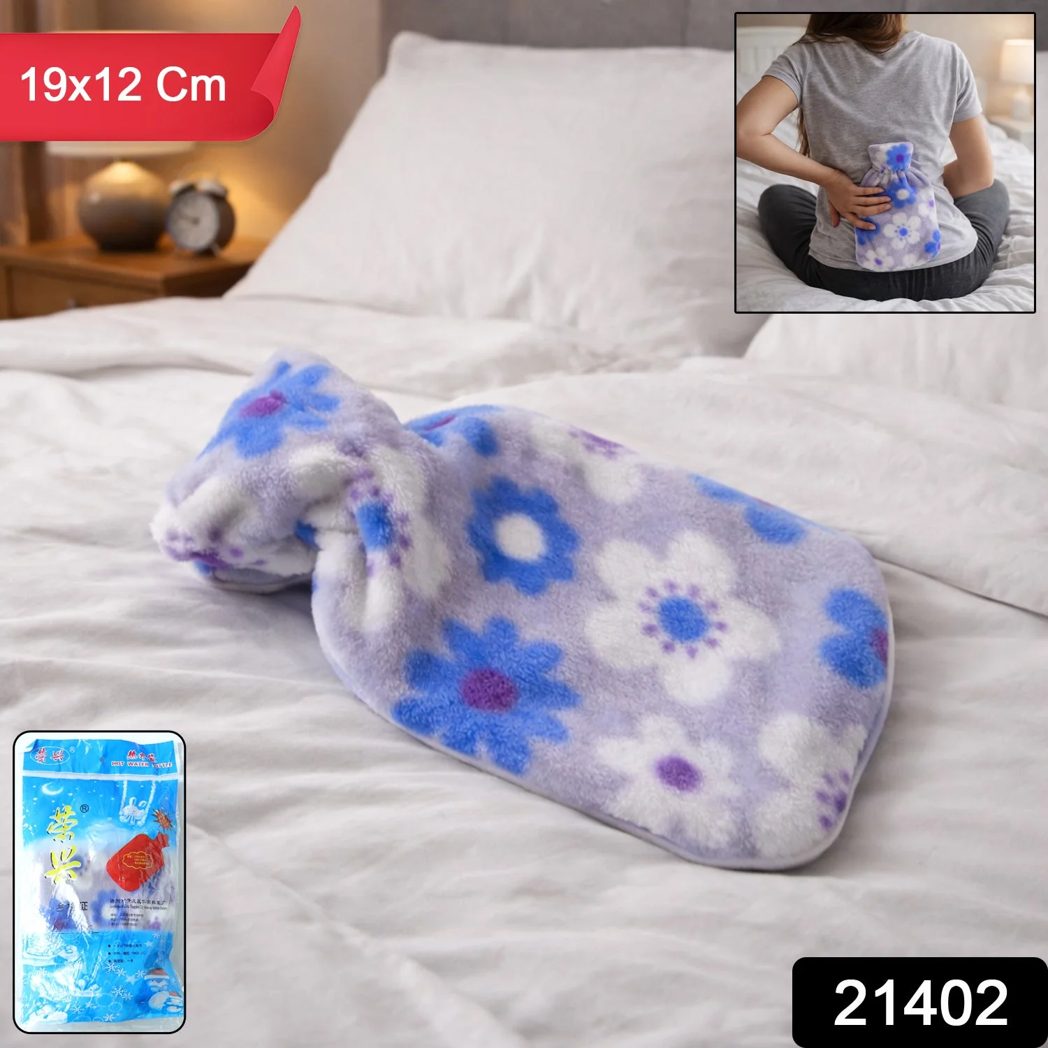 Floral Printed Soft Plush Hot Water Bag And Cover with Leak Proof Rubber Bottle for Back Pain Relief, Menstrual Cramps, Winter Warm Compress & Home Therapy Use (19x12 Cm)