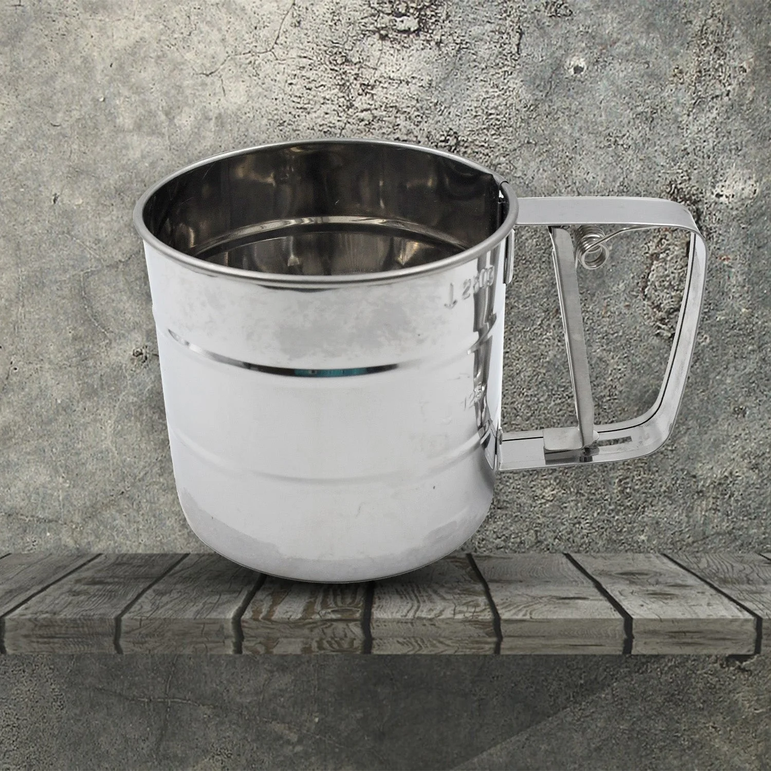 7021 Flour Sifter Stainless Steel Shaker, Creation Baking Stainless Steel Shaker Sieve Cup Manual Flour Sifter with Measuring Mark, Flour Sifter, Flour Sieve Multipurpose Handheld for Hotel for Kitchen, Home Flour Strainer