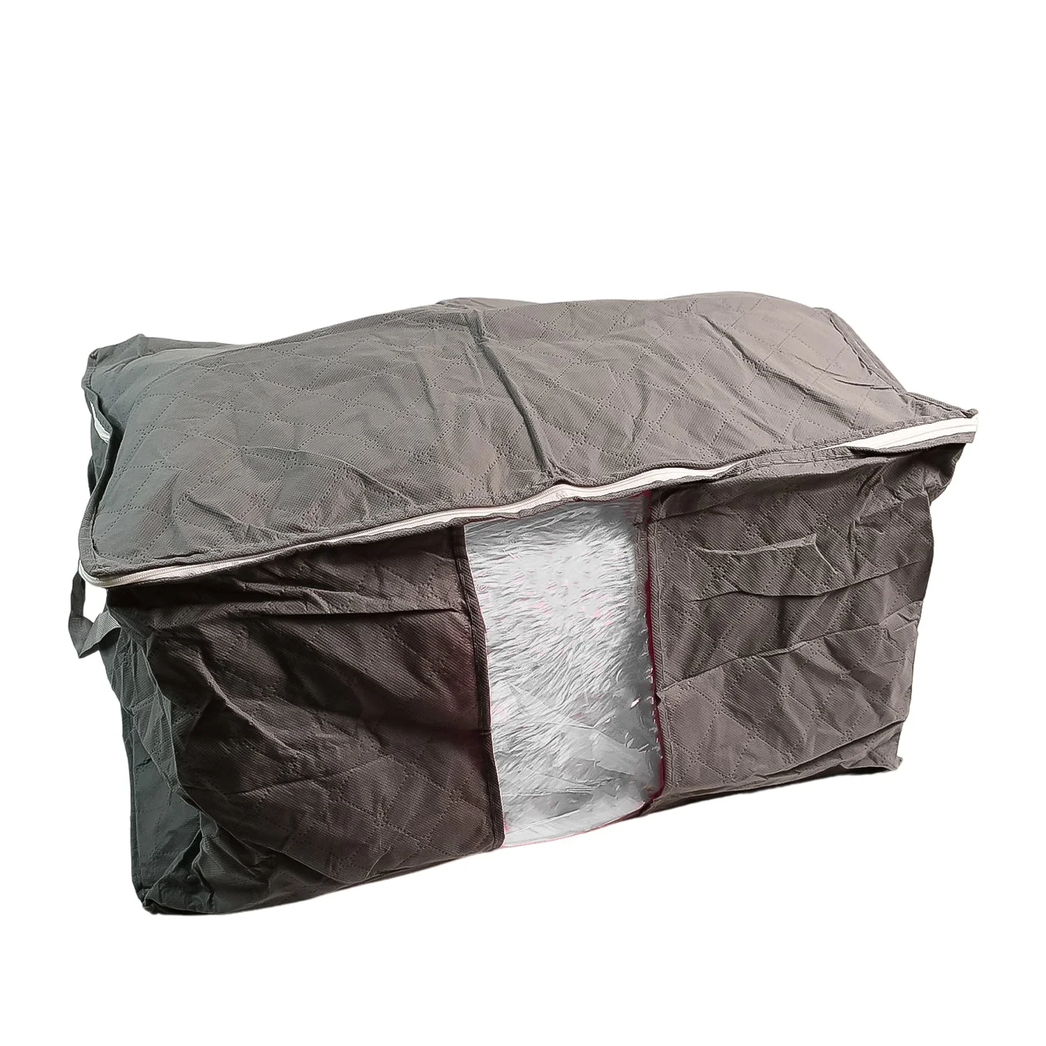 Declutter your home with this spacious, multi-purpose storage bag, crafted from durable quilted non-woven fabric for enhanced strength and breathability. Ideal for storing bulky items like blankets, quilts, pillows, seasonal clothes, and bedding, this bag features a full zip closure to protect contents from dust, moisture, and pests. A transparent window on the front allows easy viewing of stored items without opening the bag. Reinforced side handles make it easy to carry and move around. Its foldable design ensures that when not in use, it can be conveniently stored away without occupying space. Perfect for bedrooms, closets, or under-bed storage.