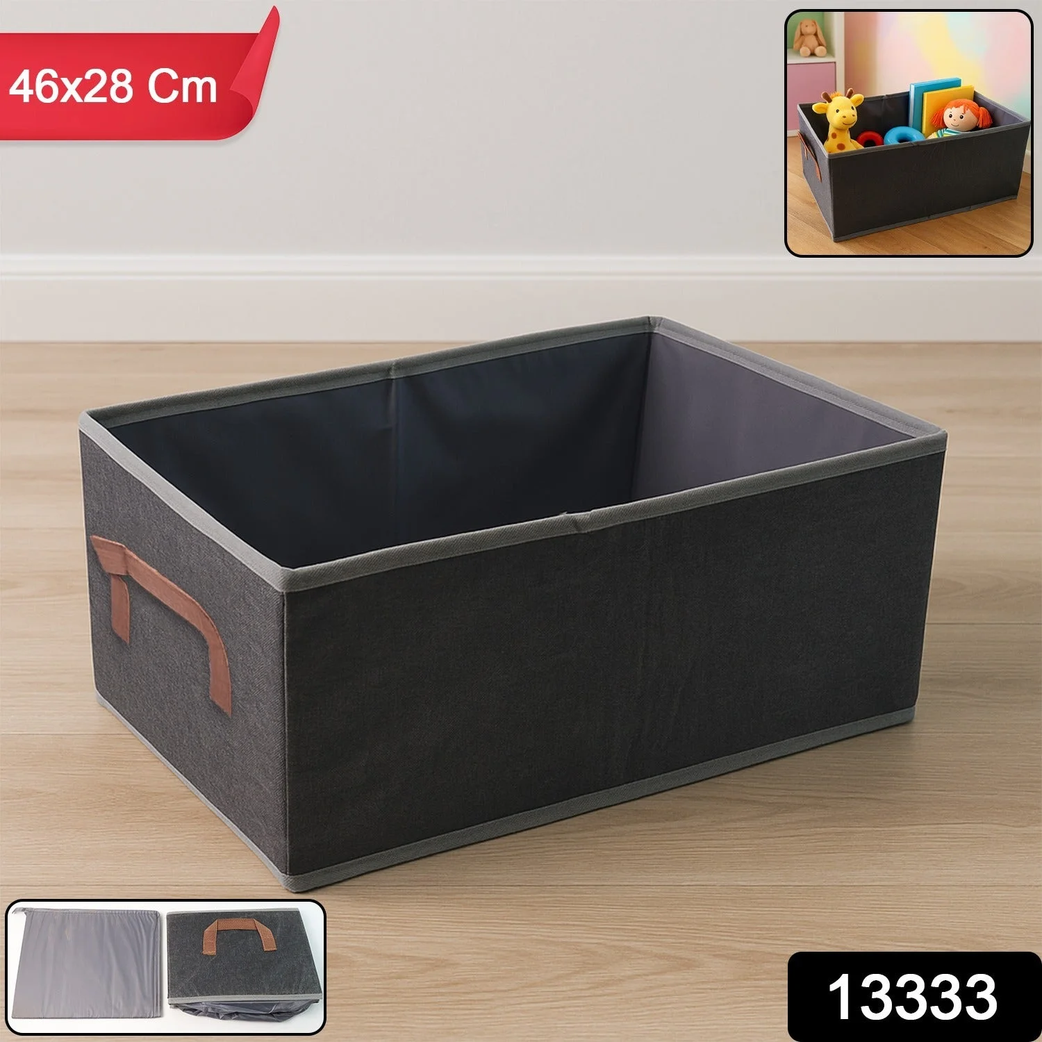 Premium Foldable Rectangular Storage Box with Handle – Large 46x28 cm Multi-Purpose Organizer Basket for Clothes, Toys, Books, and Home Essentials – Durable Fabric Collapsible Storage Bin for Bedroom, Living Room & Office Use