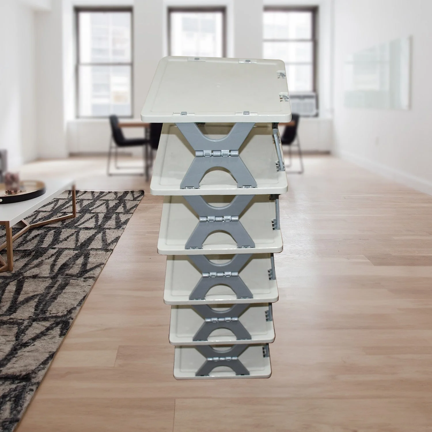 SMART SHOE RACK, SHOES STAND MULTIFUNCTIONAL ENTRYWAY FOLDABLE & COLLAPSIBLE DOOR SHOE RACK FREE STANDING HEAVY DUTY PLASTIC SHOE SHELF STORAGE ORGANIZER NARROW FOOTWEAR HOME (1 PC, 6 LAYER)