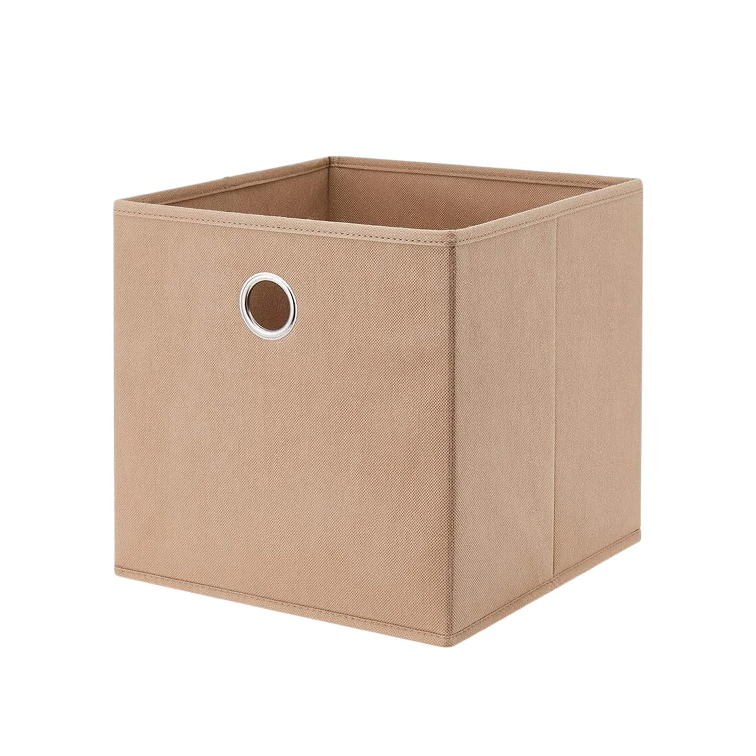 Foldable Square Storage Box with Ring | Cloth Organiser for Wardrobe | Jute Fabric | Cupboard Drawer Organiser | Ideal for Toys, Books, Shoes (20x20 Cm / 1 Pc) [B Grade]