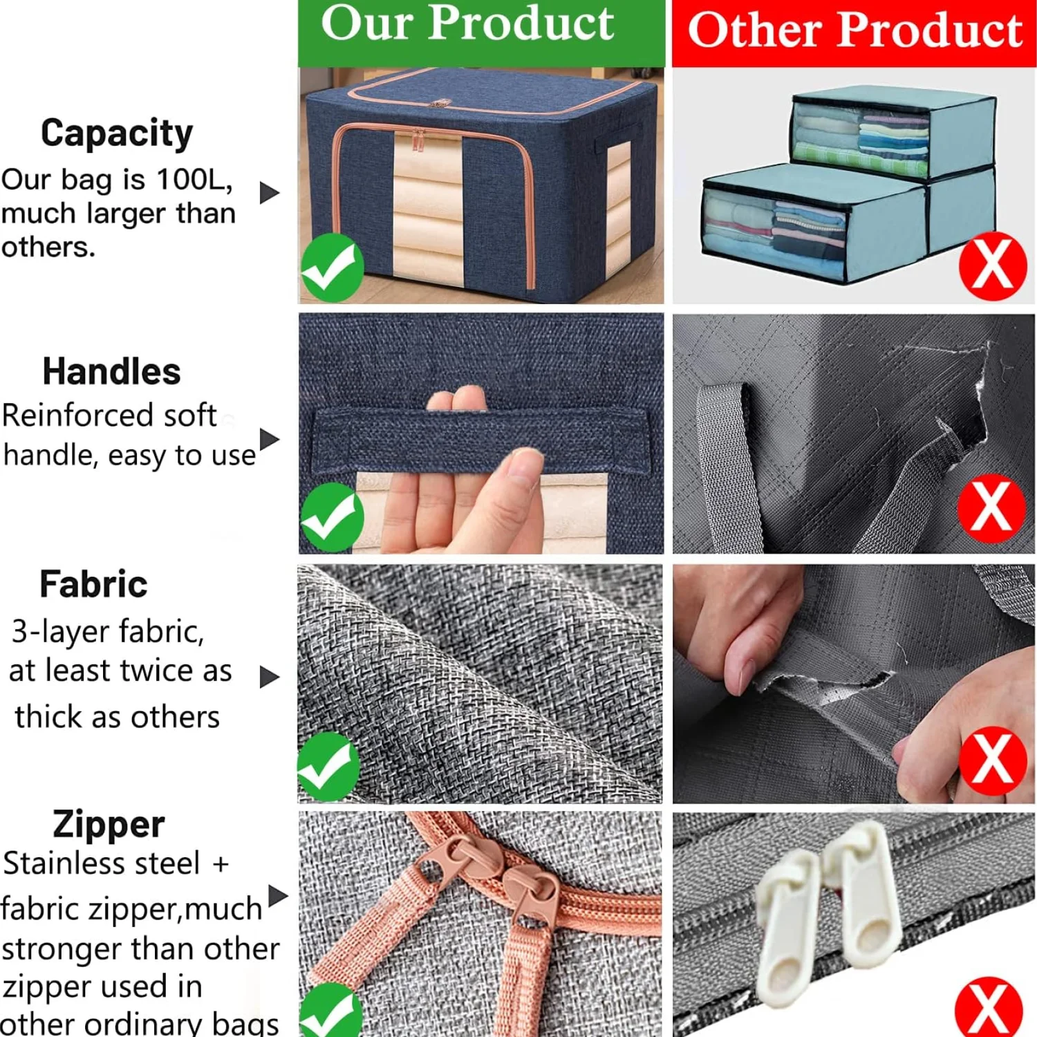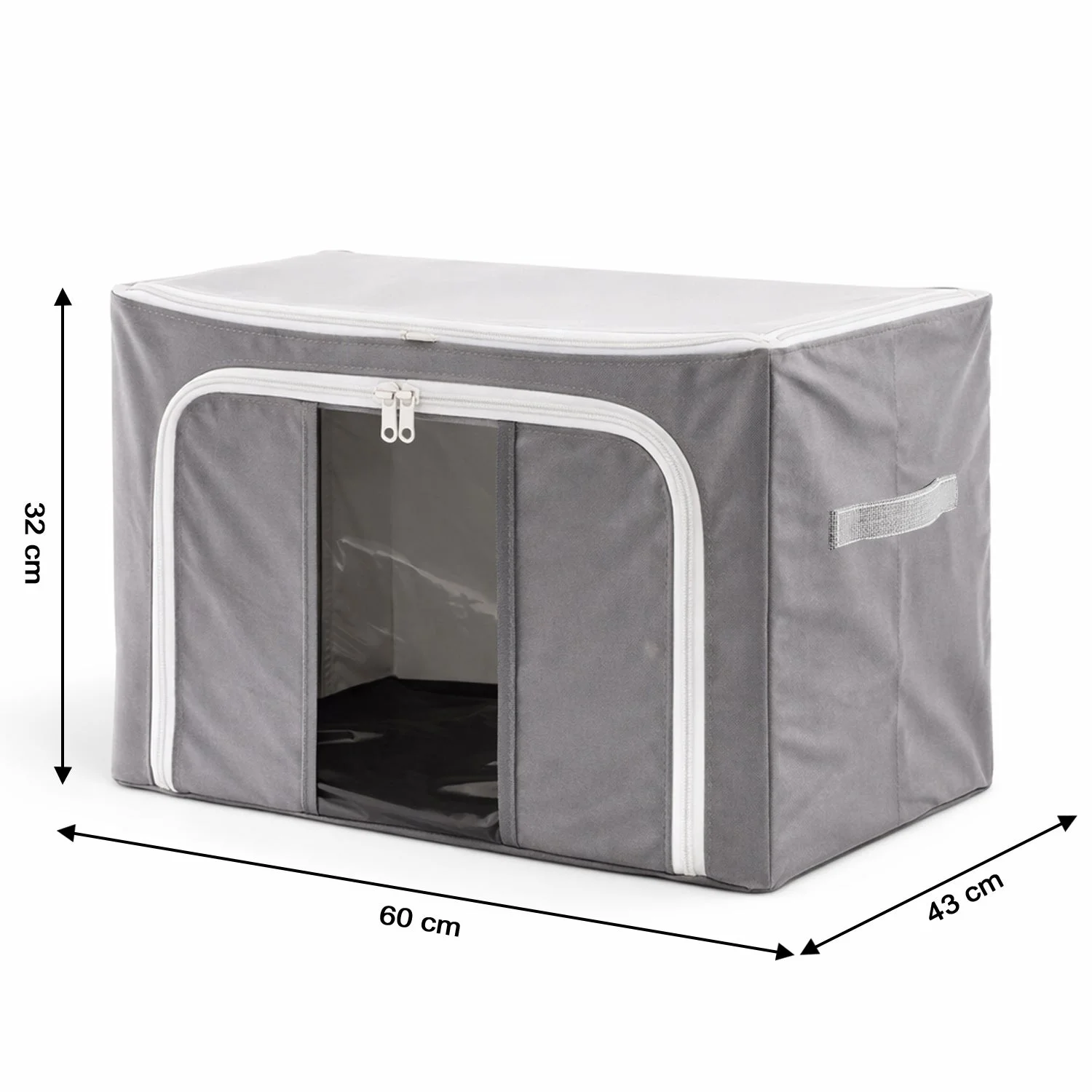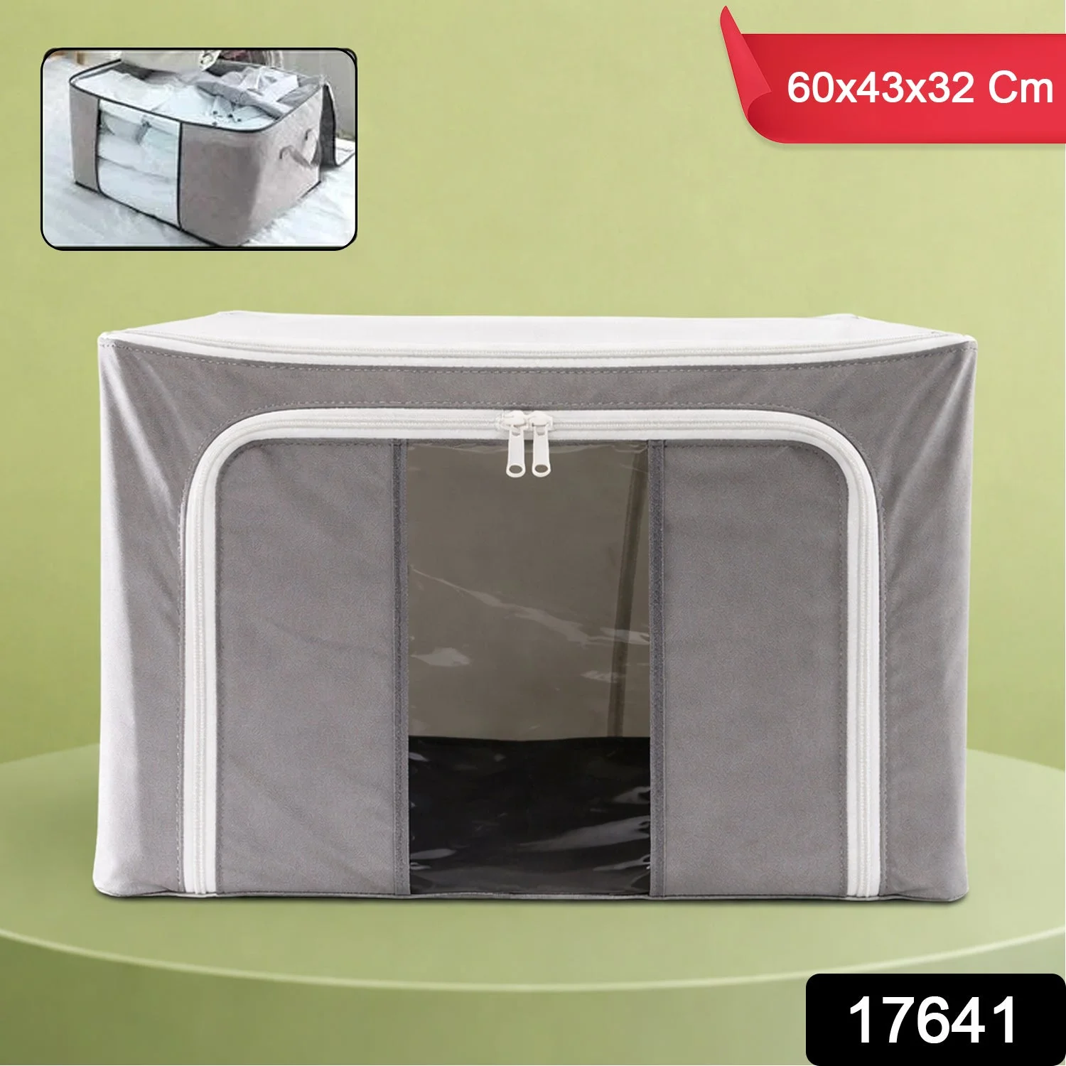 Foldable Steel Frame Clothes Living Storage Organizer Handled Bag Box for Large Size Bedding, Blankets, Women Saree, Toys & Cloth Storage Box / Bag (Mix Color)