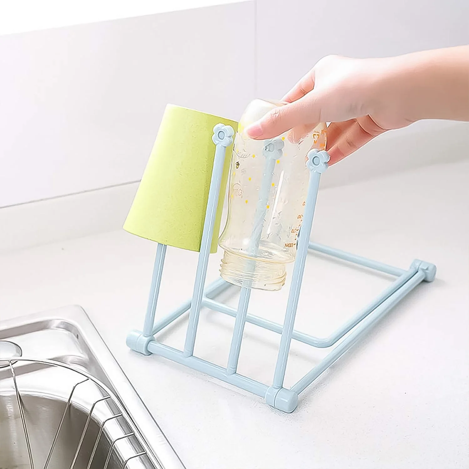 Folding Kitchen Bathroom Towel Rack, Towel Stand, Rag Rack Dish Washing Cloth Draining Organizer, Home Storage Mug 4 Hooks Towel Shelves Sponge Holder for Kitchen for Tea Cups Bracket Stand for Coffee Cups (1 Pc)