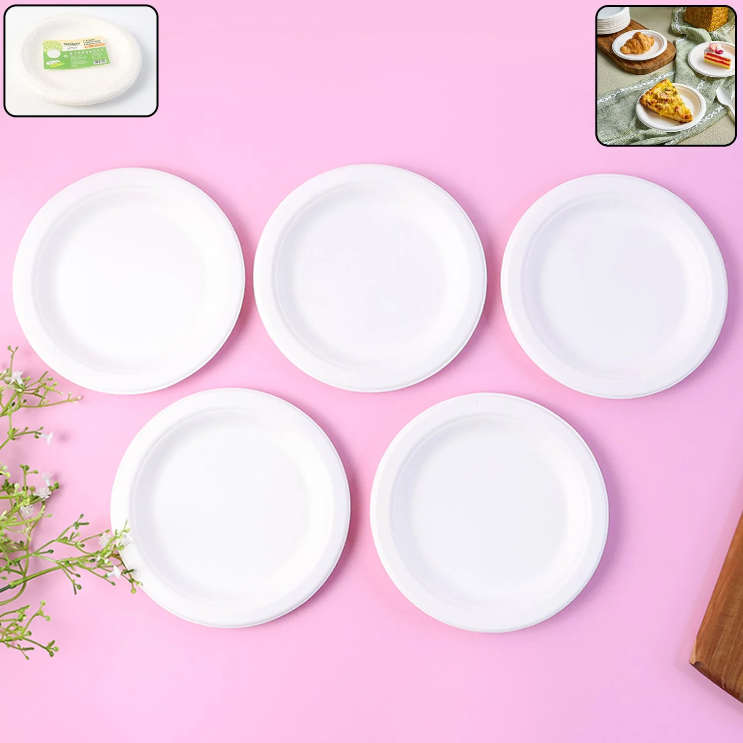 Product Type: Round compostable plate (disposable tableware)