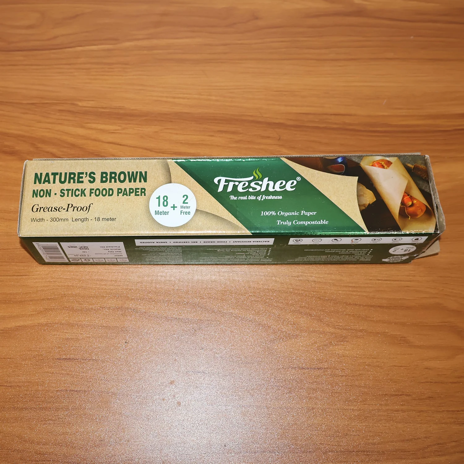 Freshee Nature’s Brown Non-Stick Food Paper 18 Meter + 2 Meter Free (Total 20 Meter) – Greaseproof Eco-Friendly Baking, Wrapping & Cooking Paper Roll (Width 300mm)