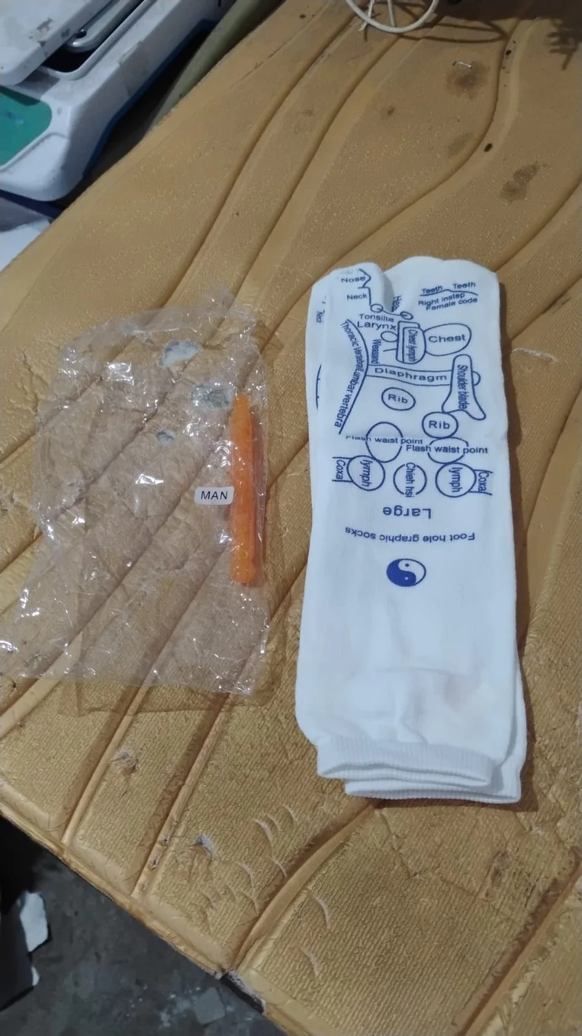 Enhance your wellness routine with this full Reflexology Acupressure Socks Set, thoughtfully designed to support natural healing through foot therapy. These socks come with a highly detailed reflex zone chart printed directly on the fabric, covering both top and bottom of the foot, including vital acupoints linked to various internal organs and body systems. Made from a stretchable and comfortable cotton blend, these socks can be used by both men and women. The included plastic massage stick helps you precisely stimulate pressure points with ease. Whether for relaxation, learning, or professional wellness practice, this set is a powerful aid to improve circulation, reduce stress, and restore balance.