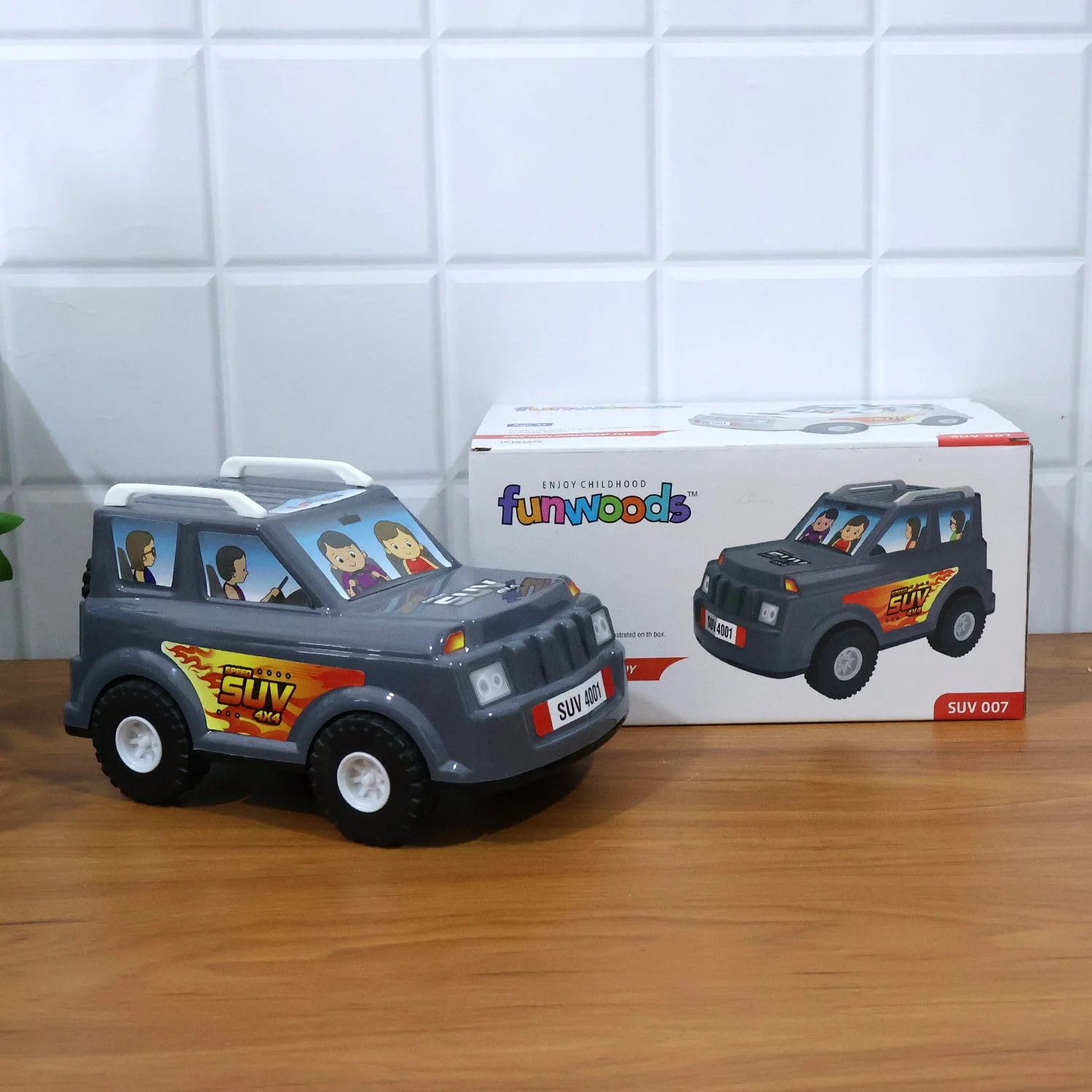 Funwoods kids SUV toy , power SUV car , friction powered toy vehicle , realistic design toy, smooth rolling wheels , push and go toy , durable kids car , plastic toy vehicle , pretend play SUV , no battery toy , fun playtime toy , sturdy toy SUV , mini 4x4 truck , imaginative play vehicle , creative play car