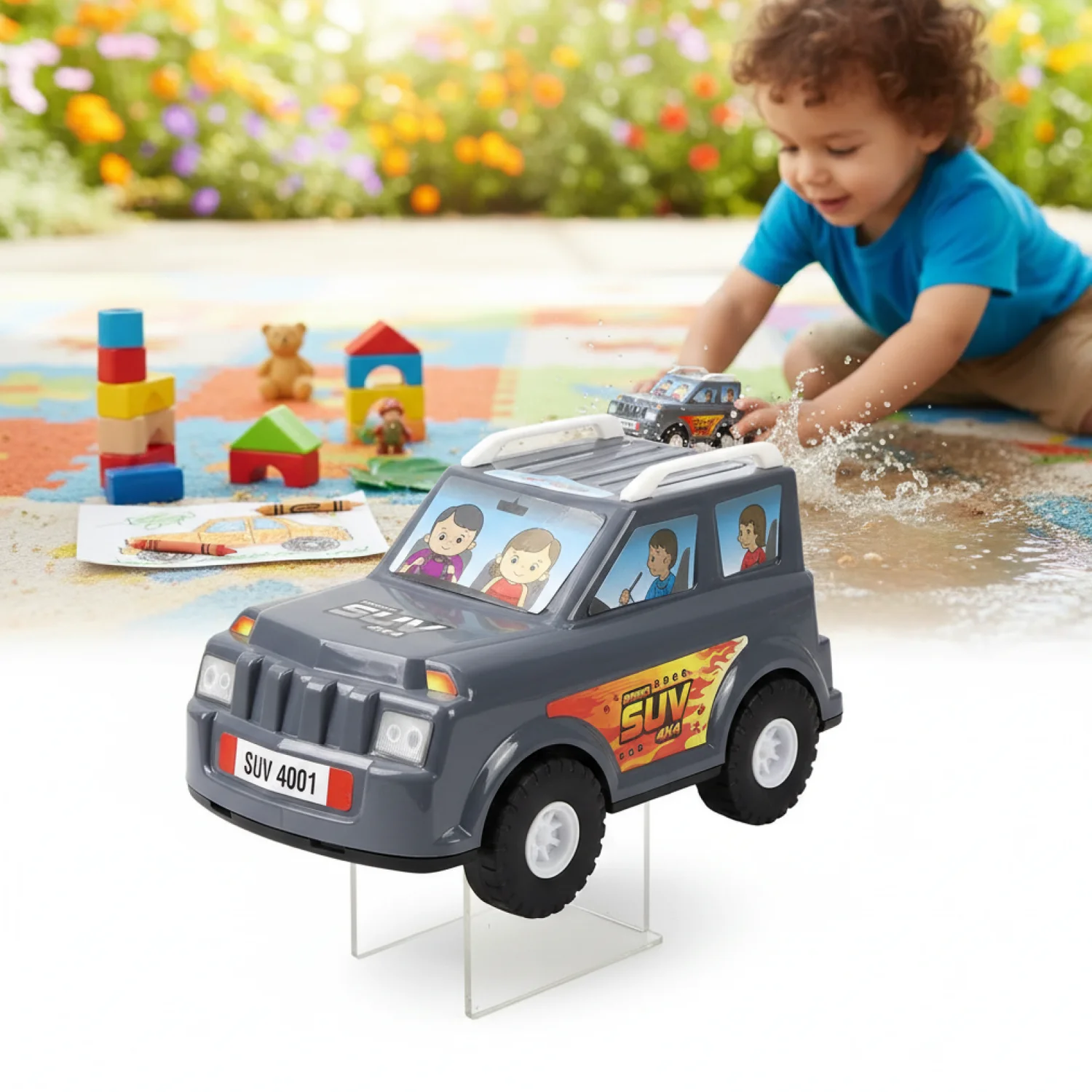 The Speed Racer SUV Toy Car is designed to provide hours of fun for kids who love playing with realistic cars. This toy SUV features movable wheels, vibrant colors, and a detailed design with fun driver figures in the front seats. Ideal for outdoor play, this toy car will make your little one feel like they’re driving their own vehicle. Whether for driving on grass, sand, or indoors, this durable, high-quality car will engage your child in imaginative play, helping them develop motor skills and creativity.