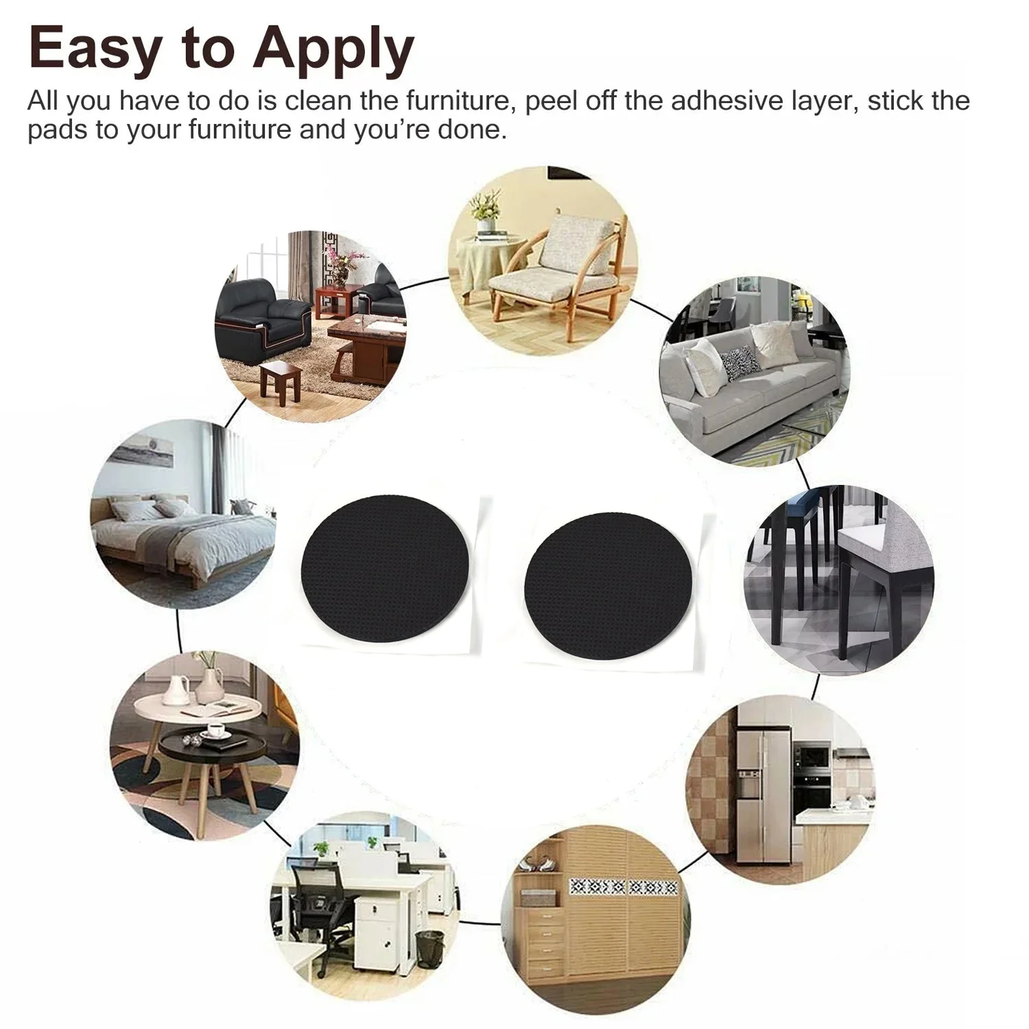 *HEAVY-DUTY adhesive backing keeps felt rounds firmly in place when furniture slides or is relocated