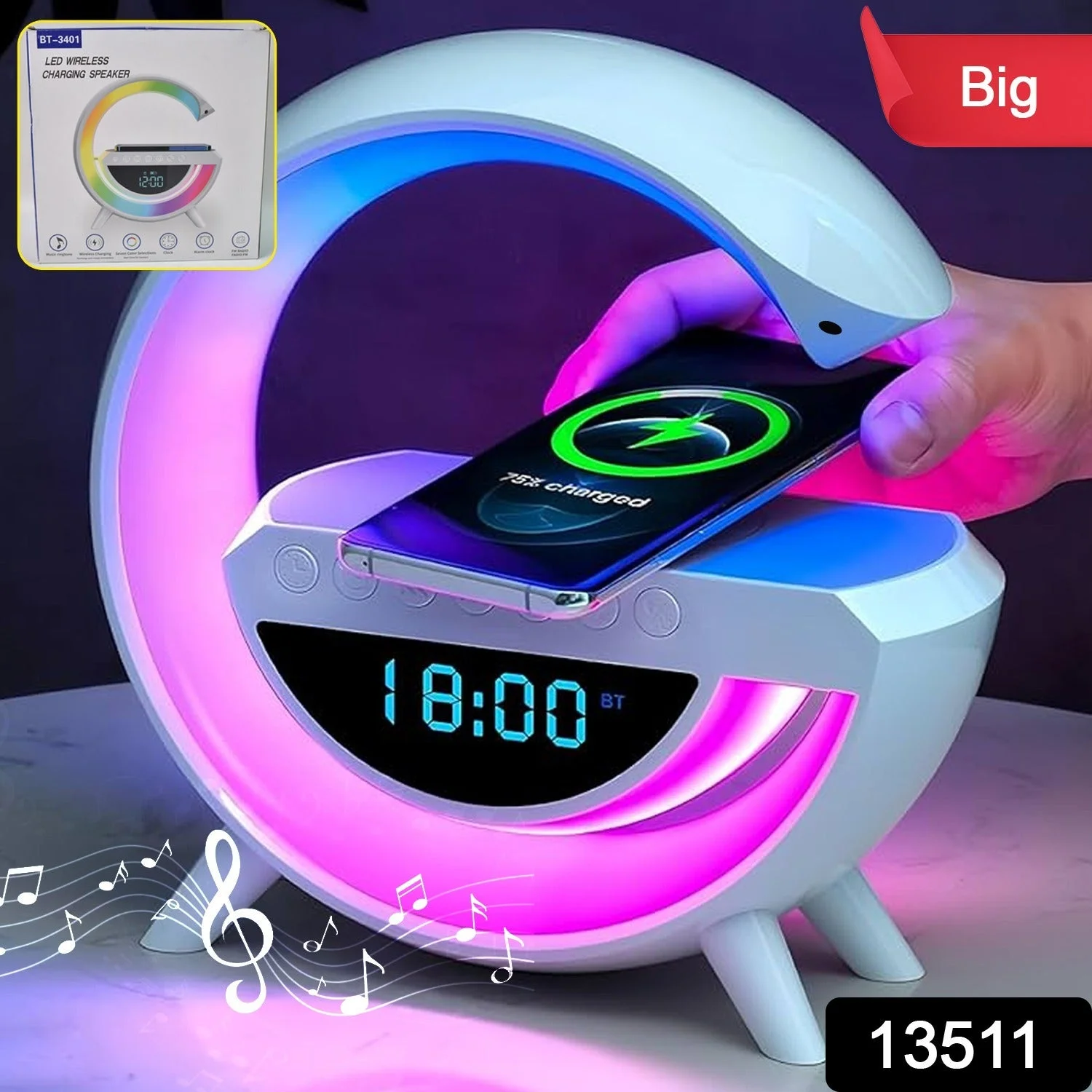 - Multifunctional Night Light: An atmosphere light : wireless phone charger, Bluetooth speaker, sleep light, bedside light, clock, alarm clock all in one. You can use this great night light while working, studying, reading, and sleeping.