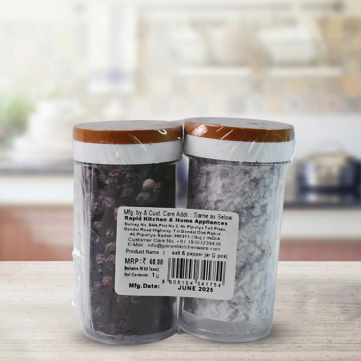 Ganesh Airtight Transparent Kitchen Storage Container Jar Set with Wooden Finish Lid – 2 Pc Multipurpose Spice, Salt, Pepper, Masala & Food Storage Jars
