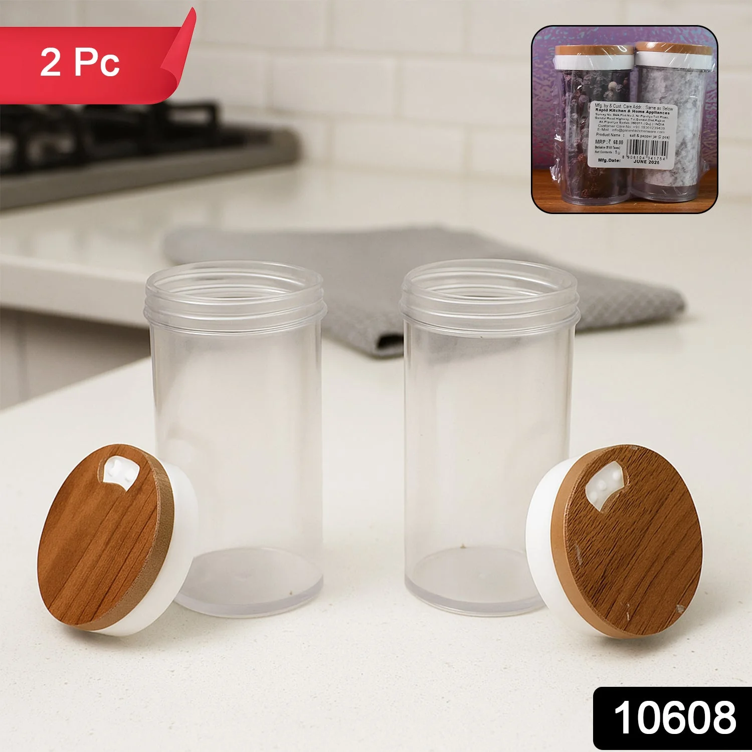 This 2 Pc Airtight Transparent Storage Container Set is perfect for organizing your kitchen essentials like spices, salt, pepper, masala powders, dry fruits, and snacks. Designed with a modern transparent body and elegant wooden-finish lid, these containers combine style with functionality. The airtight closure keeps food fresh, prevents moisture, and locks in aroma. Ideal for everyday kitchen storage, dining table use, or even office pantry organization, this jar set is both practical and aesthetically pleasing.