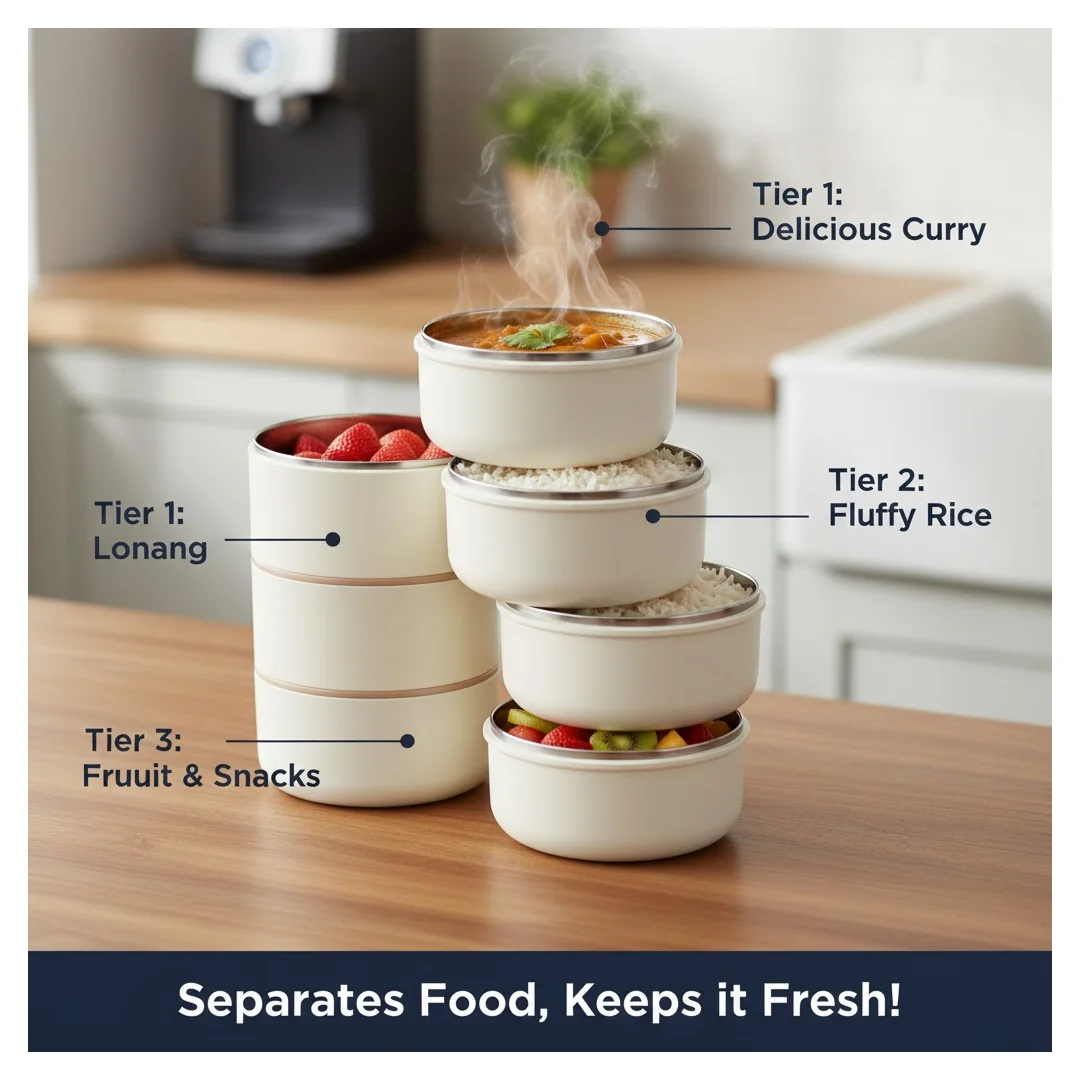 Be the first to review Ganesh Smart Stack 3 Layer Portable Lunch Box for Office, School, Picnic (3 Layer)!